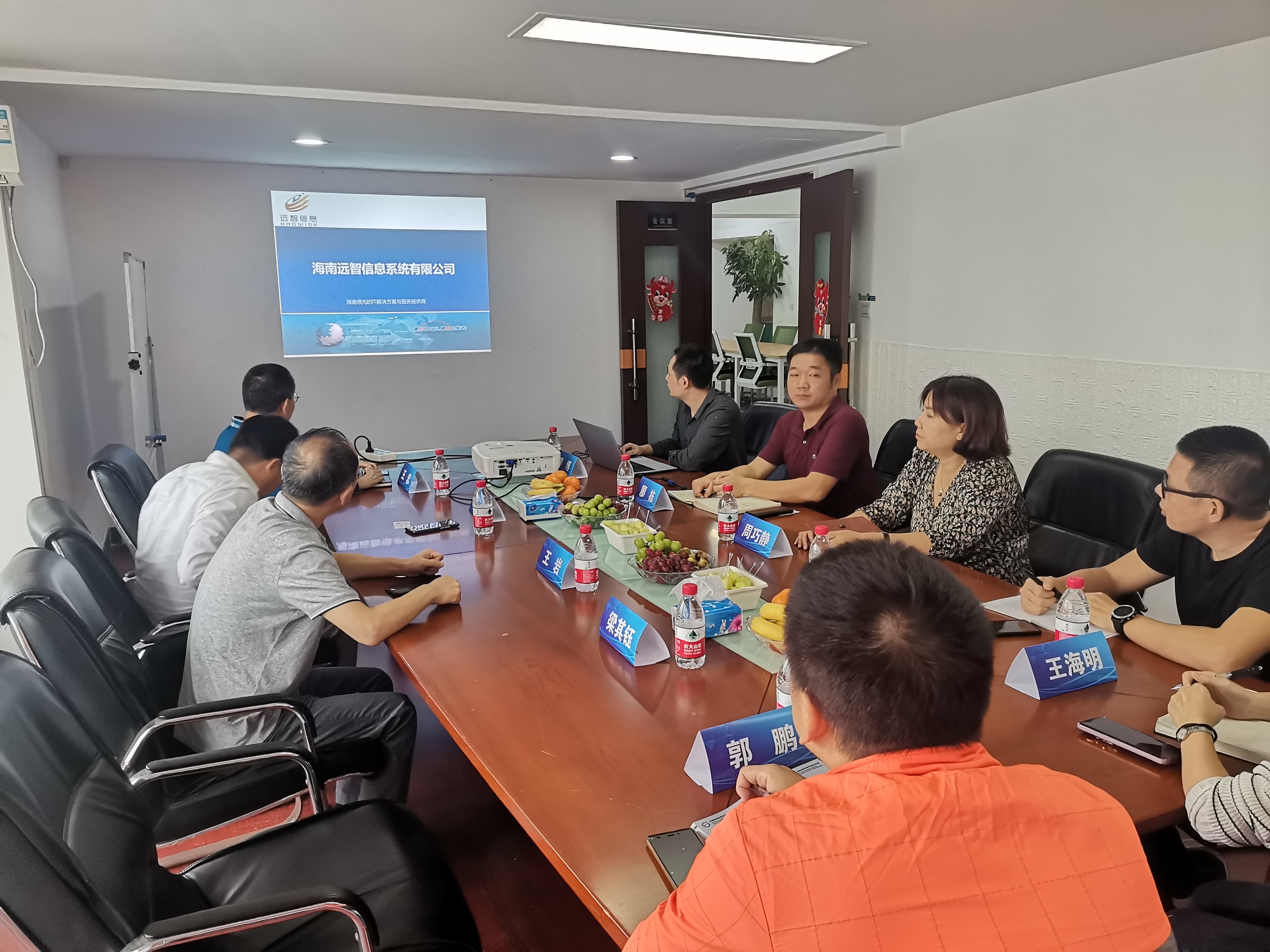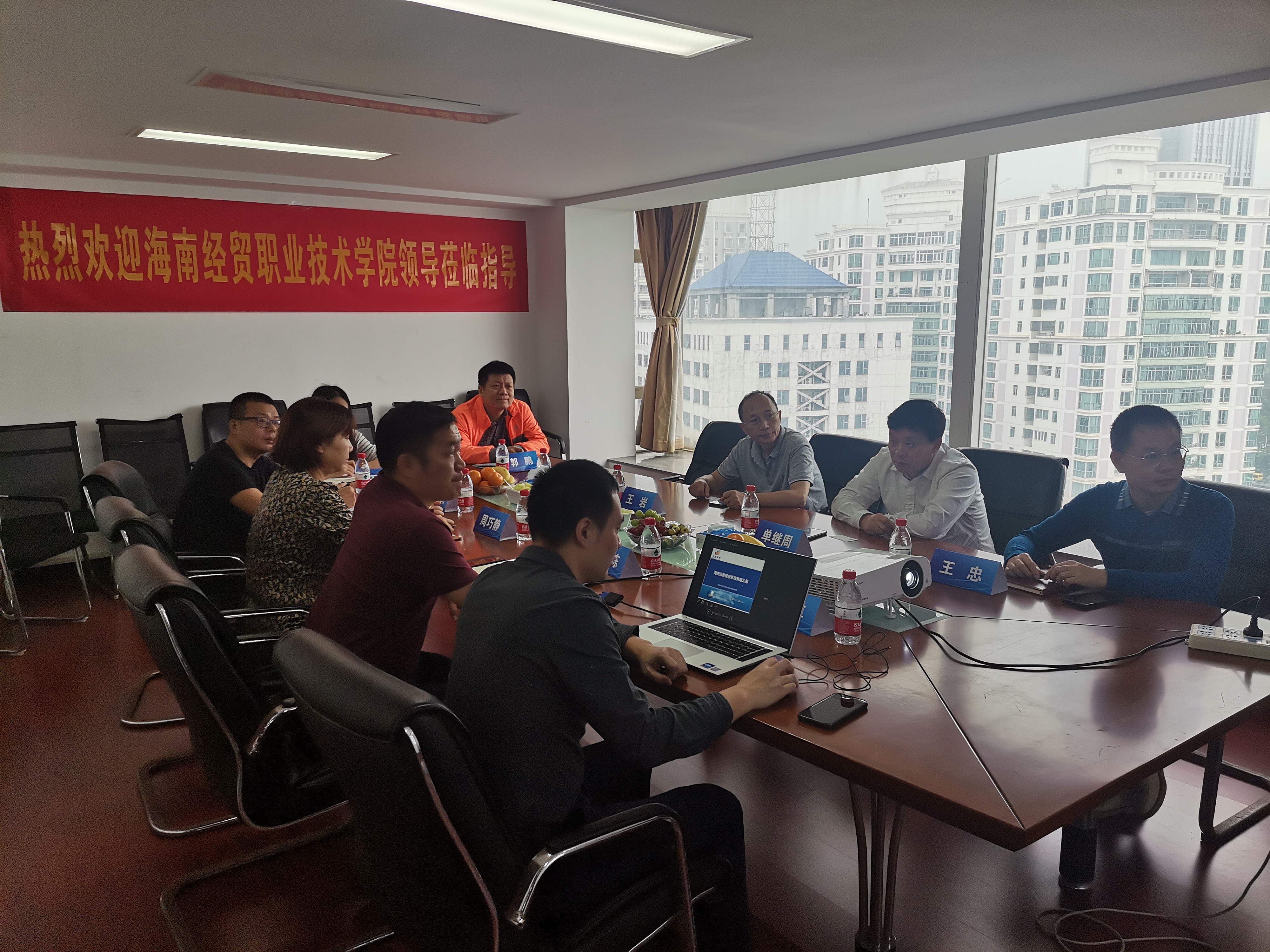 在洽谈会上,海南远智信息系统有限公司的总经理廖博对公司的发展历程、技术优势和服务案例进行了详细介绍,廖总表示软件开发和系统整体解决方案是公司的主要优势,所服务的领域包括医疗、教育、政府等行业。随后,王忠经理将海经贸太阳集团tyc539的专业特点和员工就业方向进行了说明,王经理针对教师挂职锻炼、企业横向纵向课题申报、员工顶岗实习等方面与远智公司进行探讨,希望在上述方面可以与远智公司展开合作。