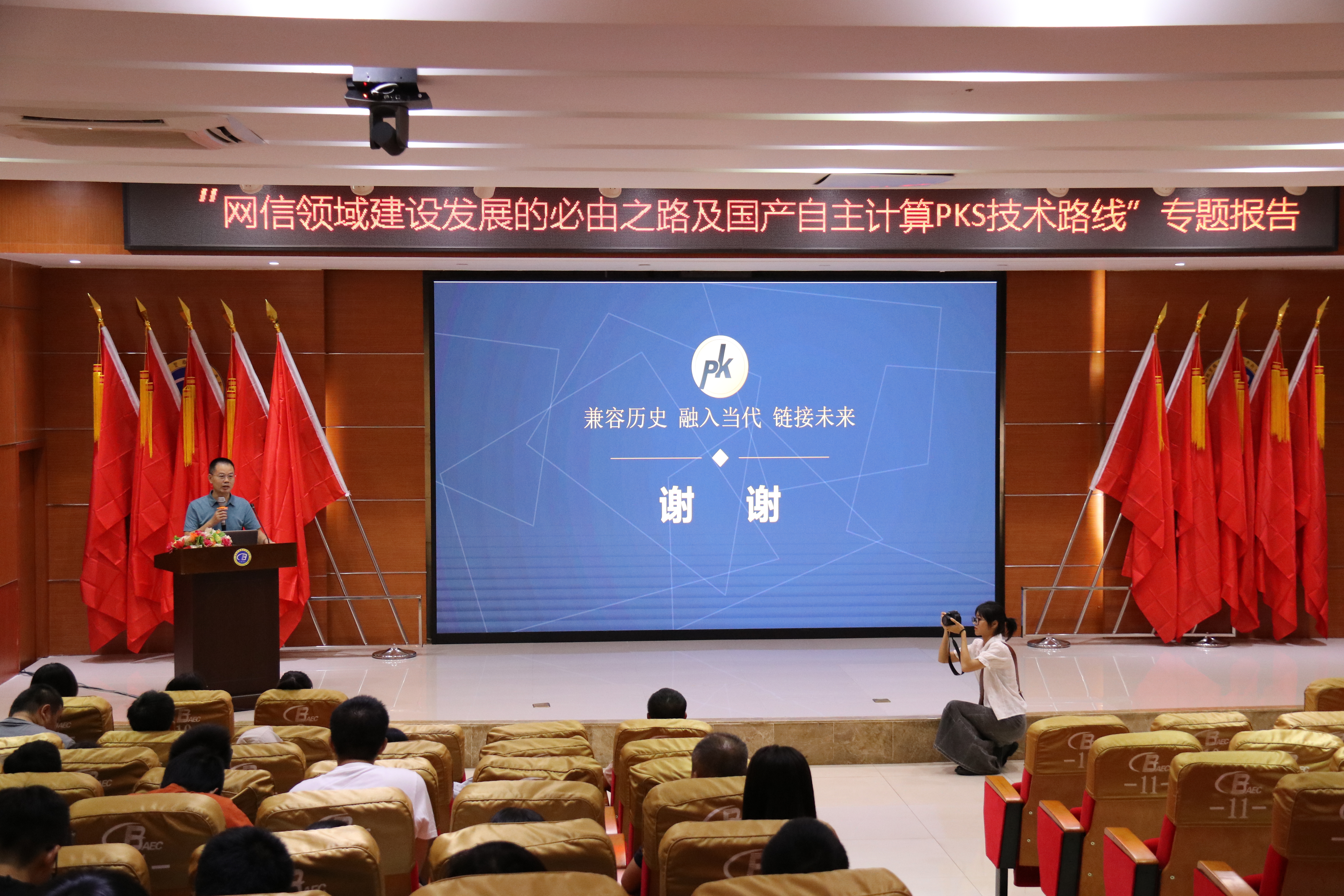 本次研讨班分为两部分,第一部分由来自中电创新院校企合作主管刘海龙为大家带来题为《网信领域建设发展的必由之路及国产自主计算PKS技术路线》专题讲座。刘经理通过大量的案例分析,向师生们阐述了国产自主计算PKS的技术原理和技术优势,他语言通俗易懂,将复杂的技术原理深入浅出地分析出来,在场的师生受益匪浅。
