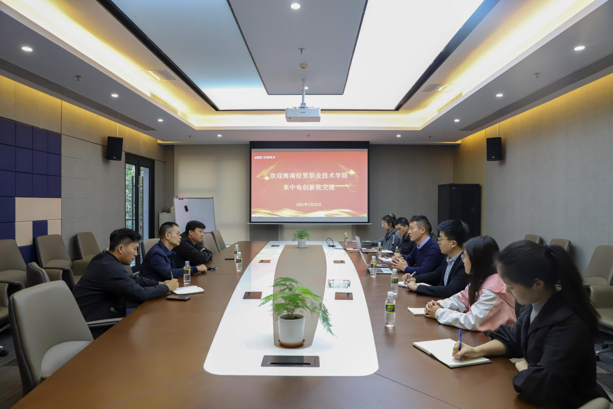 2021年1月22日,太阳集团tyc539经理王忠、副经理单继周、学工办主任梁其钰实地走访了中电(海南)联合创新研究院,并就校企合作进行会议交流。中电创新院副经理李锁在、校企合作部副主任刘海龙和校企合作部其他成员一同交流并参加了会议。