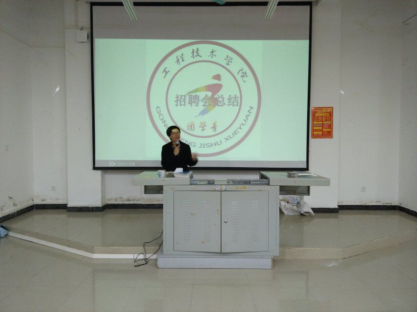 11月23日讯,(青年媒体中心庄迎迎报道)11月21日晚7:30分在二栋教学楼408教室举行了工程技术公司2018届毕业生招聘会总结大会,出席本次大会的主要有公司党总支副书记陈亚芳、学工办主任梁其钰、团学青负责人唐图、院主席团成员以及全体团学青干事,大会在主持人刘珂的开场白下拉开了帷幕。