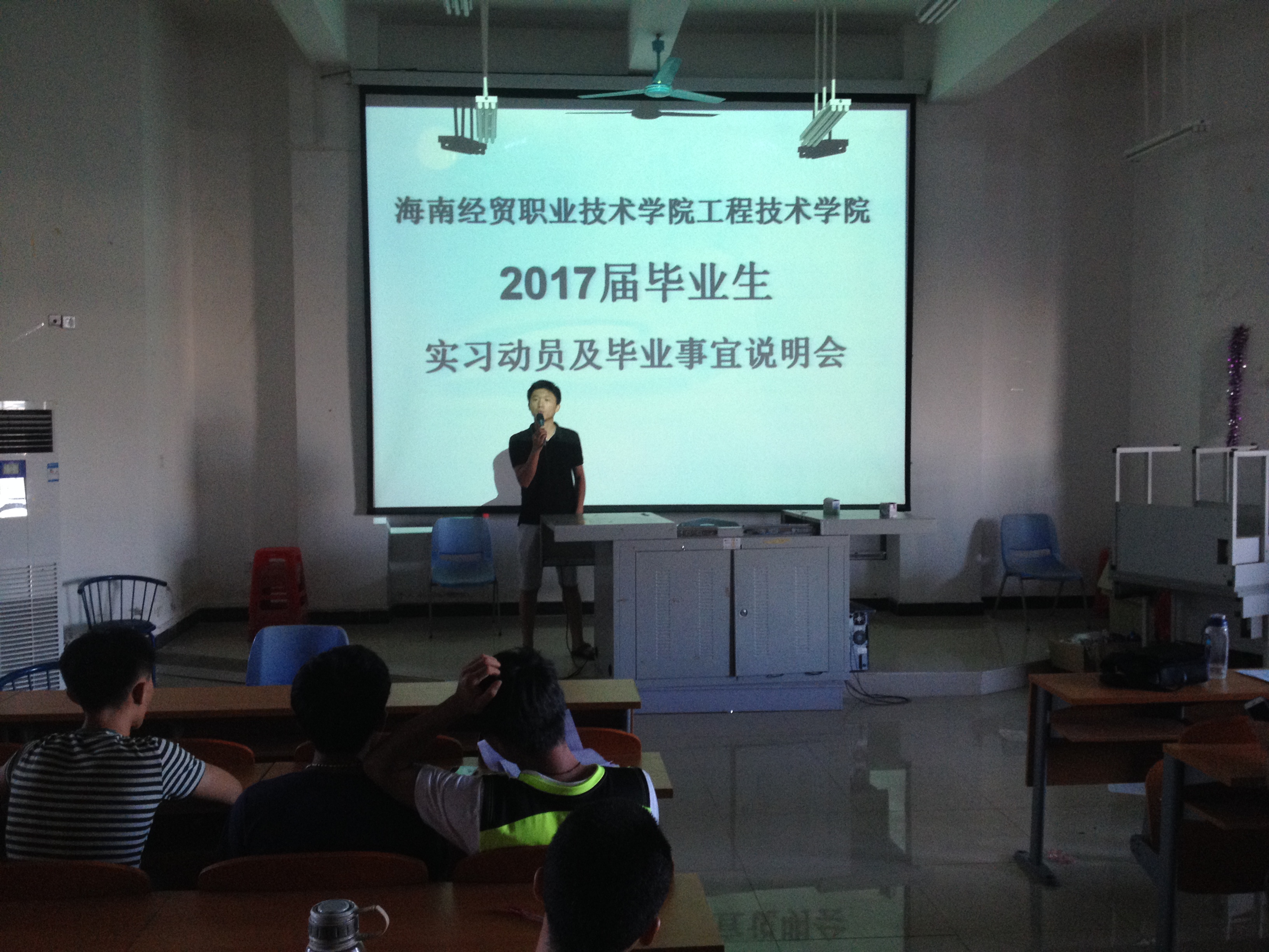 6月21日讯(工程技术公司 侯英之报道)为了确保实习工作的顺利开展,使同学们充分认识到实习的重要性,6月20日下午6:00在二栋教学楼2-526教室召开了工程技术公司2017届工科类毕业生实习动员大会,本次大会由工科类辅导员代晓明老师主持,出席本次大会的有学工办办主任梁其钰老师、教学秘书龙腾老师以及14级全体工科类员工。