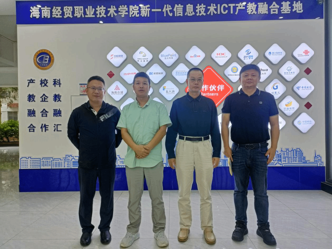 10月30日上午,海南省信息产业投资集团有限公司副总经理孙甄、中电科普天科技股份有限公司数字创新院副经理智海峰到访公司,就产教融合、专业建设等方面与王忠经理进行交流探讨。公司康东副经理,靳向峰老师一同参加会谈交流。