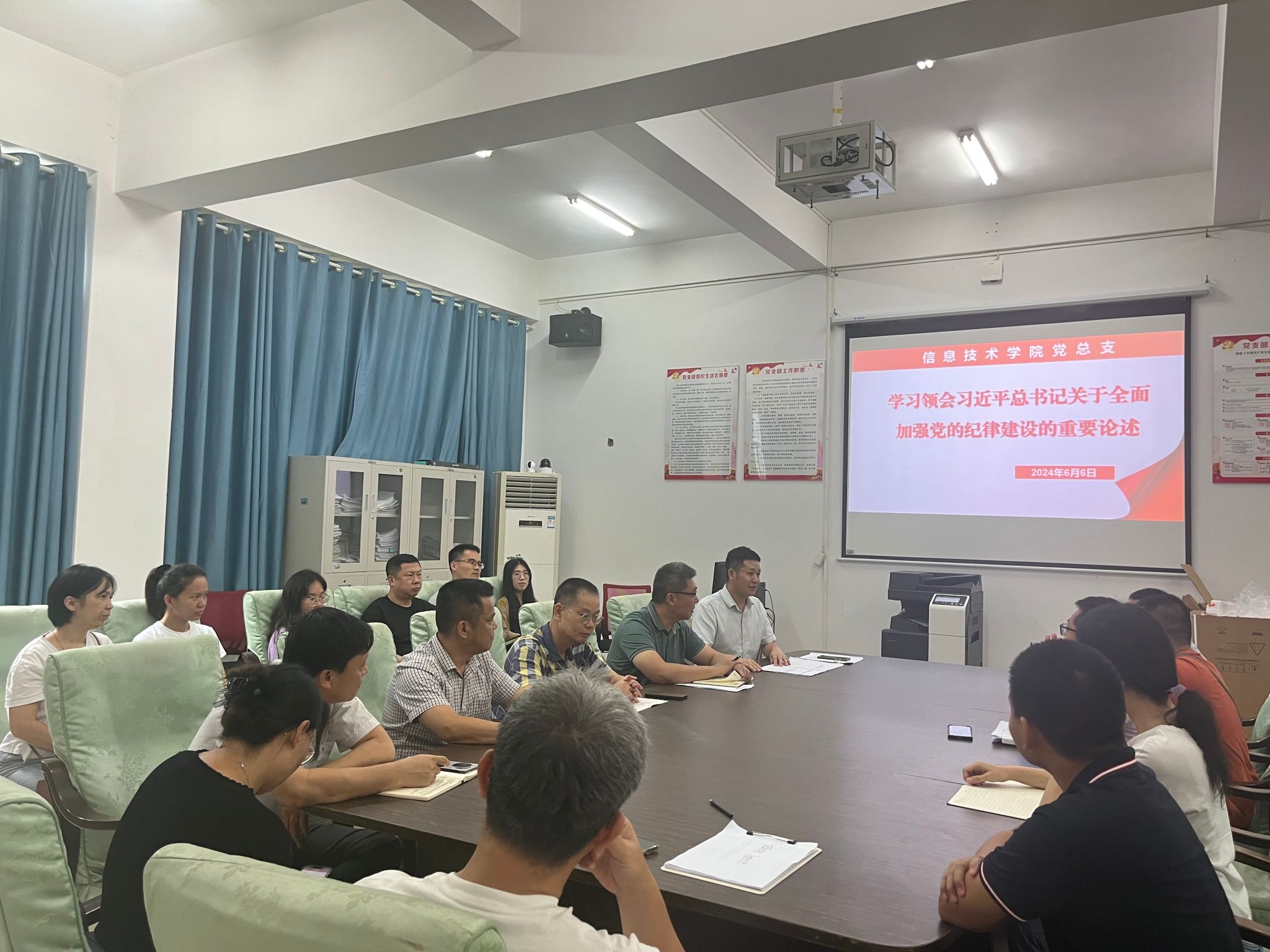 会上,教工党支部书记康东首先传达了上级党组织的文件精神,他带领全体党员认真研读重要论述,深刻剖析其科学内涵和实践要求。通过系统的学习,党员们对党的纪律建设有了更为清晰的认识,纷纷表示要重温党章,严明党纪,加强自我约束,确保党的纪律在各项工作中得到全面贯彻执行。