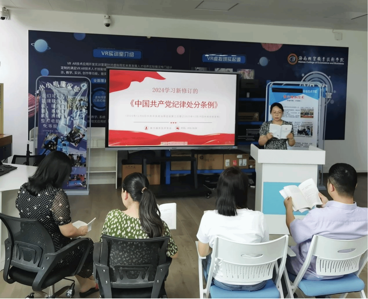 6月4日下午,太阳集团tyc539教工党支部开展《中国共产党纪律处分条例》专题学习会,会议由教工党支部书记康东主持,数字媒体技术专业教师党员们参加。