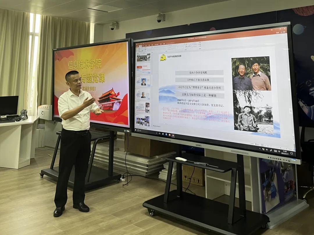 5月22日,信息技术公司党总支书记符胜在4-401多媒体教室以《习近平的知青故事》为题,给全院全体师生党员30多人讲授“学习贯彻习近平新时代中国特色社会主义思想”主题教育专题党课。专题党课由教工党支部书记康东副经理主持。