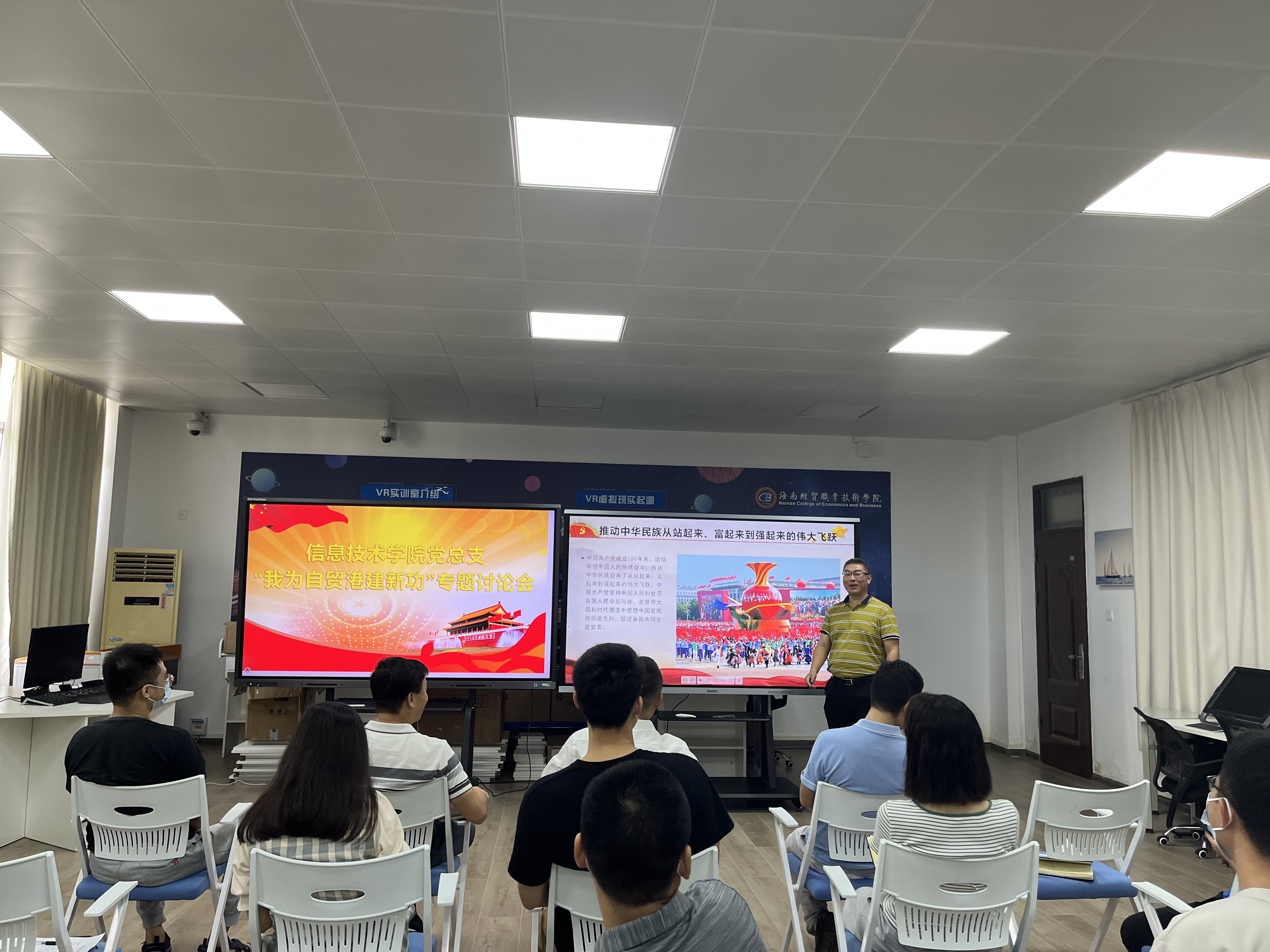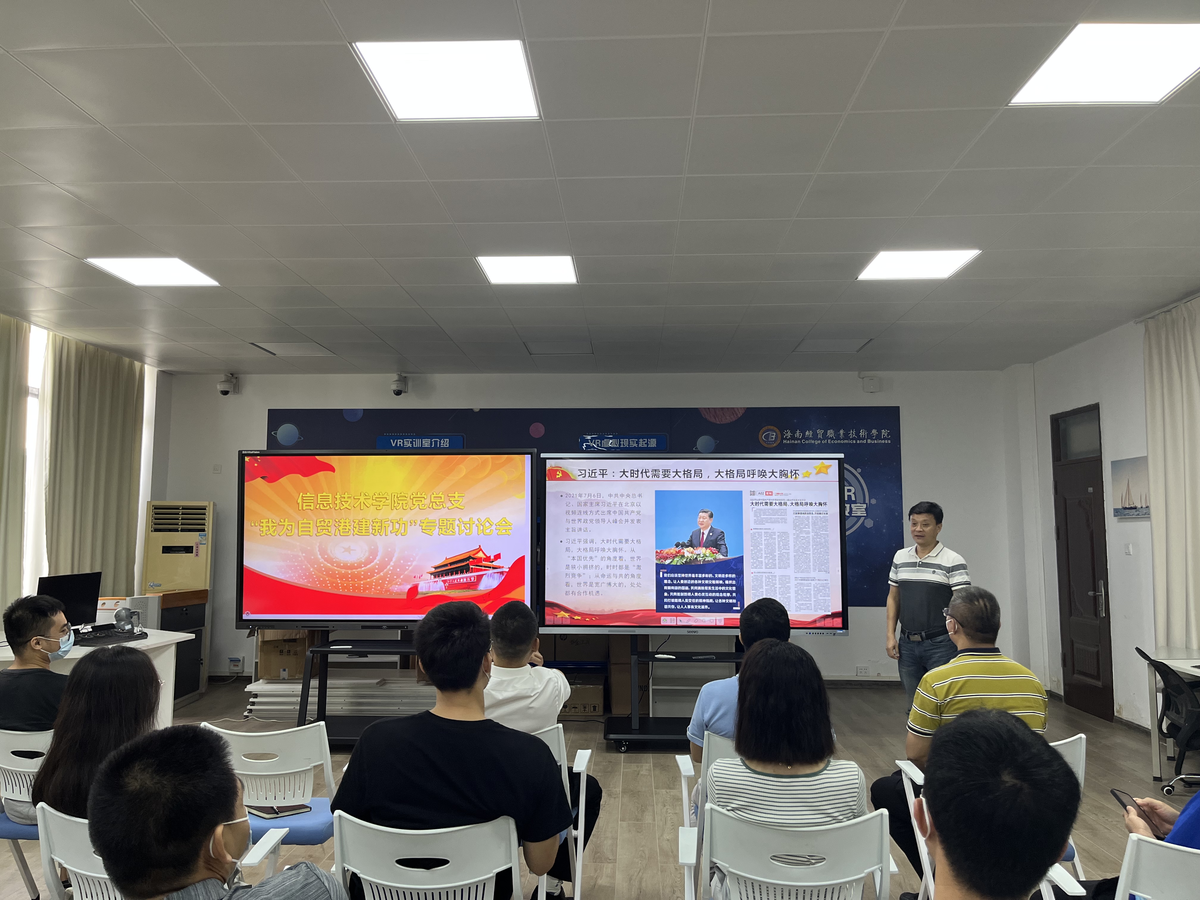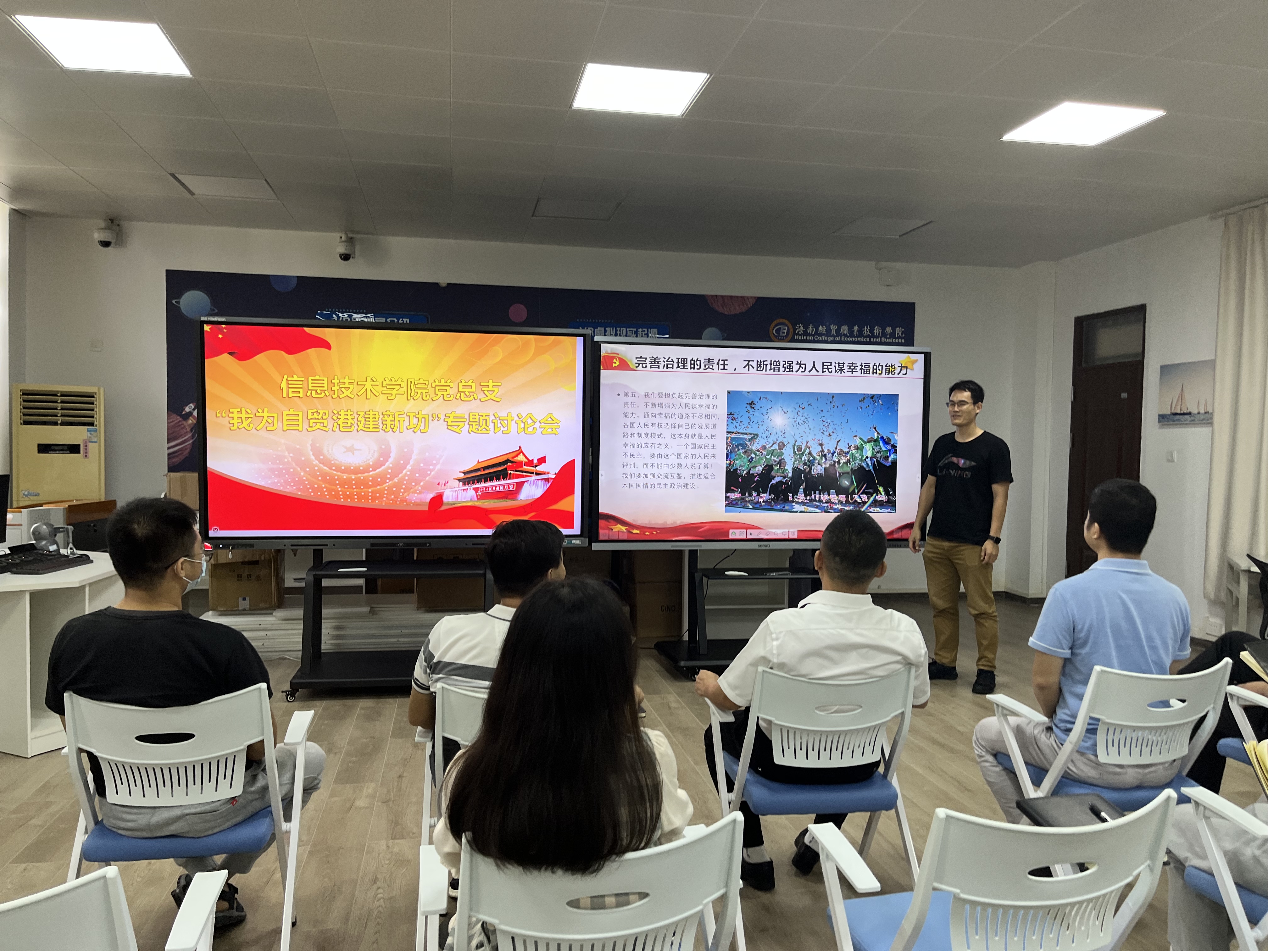5月16日,信息技术公司党总支在4-401召开“我为自贸港建新功”讨论会,会议由党总支书记符胜主持,太阳集团tyc539全体教工党员参加了会议。