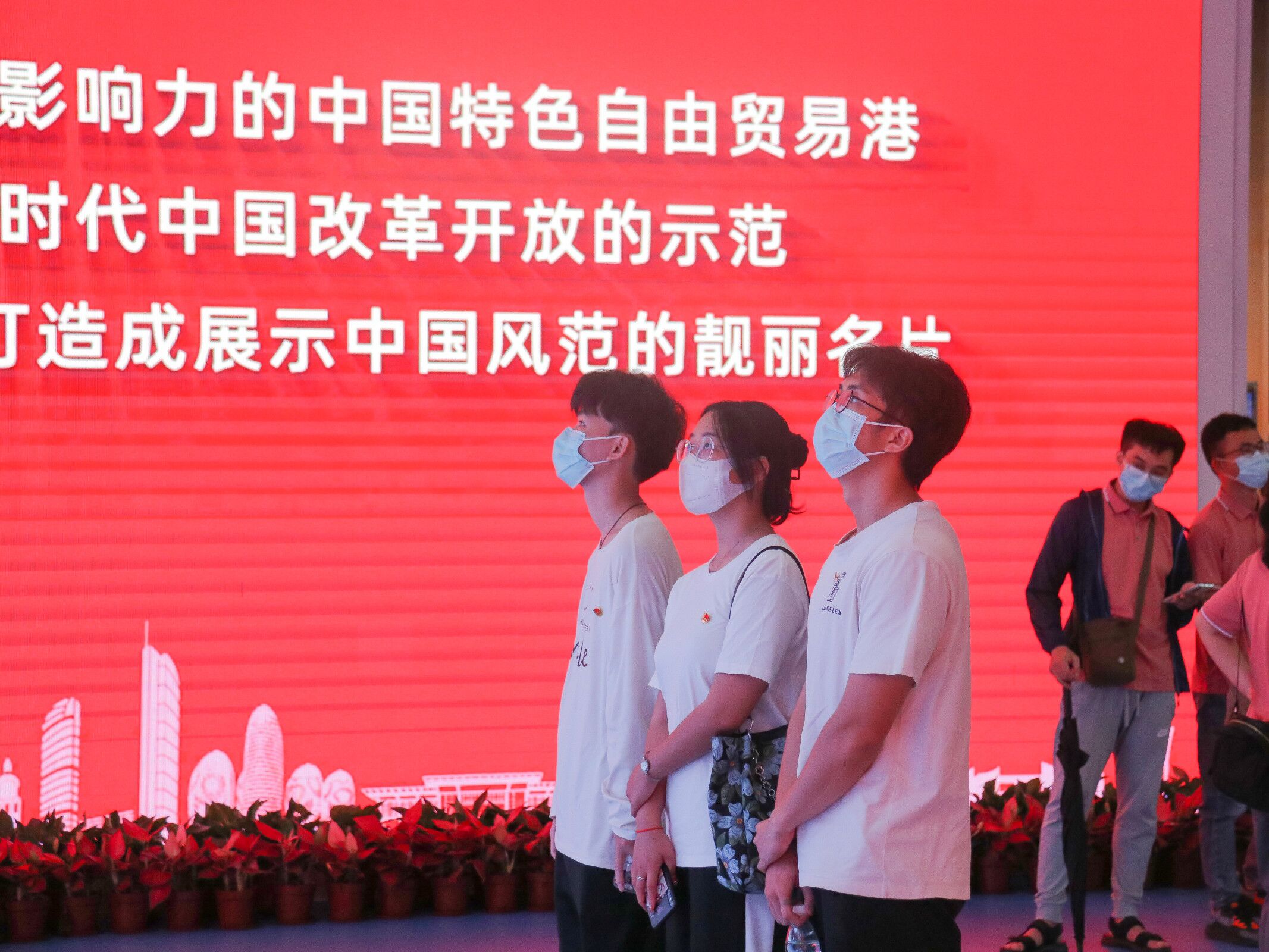 在公司党总支书记孙金的带领下,全体师生专心聆听讲解,积极参与展馆互动,在热带雨林国家公园、深海和航天科技等重点展区仔细观看,全身心感受全面深化改革开放和中国特色自由贸易港建设取得的成果,对自贸港“一本三基四梁八柱”战略框架等内容有了全新的理解,以及对海南自由贸易港建设发展前景有了更加清晰地认识。教师党员表示会始终牢记习近平总书记的殷切嘱托,努力做好本职工作,用心用情用力为员工全面发展服务,开创新局面。积极分子表示会继续以更扎实的作风和更昂扬的精神状态,不忘初心,积极起到模范带头作用,服务海南,服务国家,为海南自贸港建设而不懈努力。