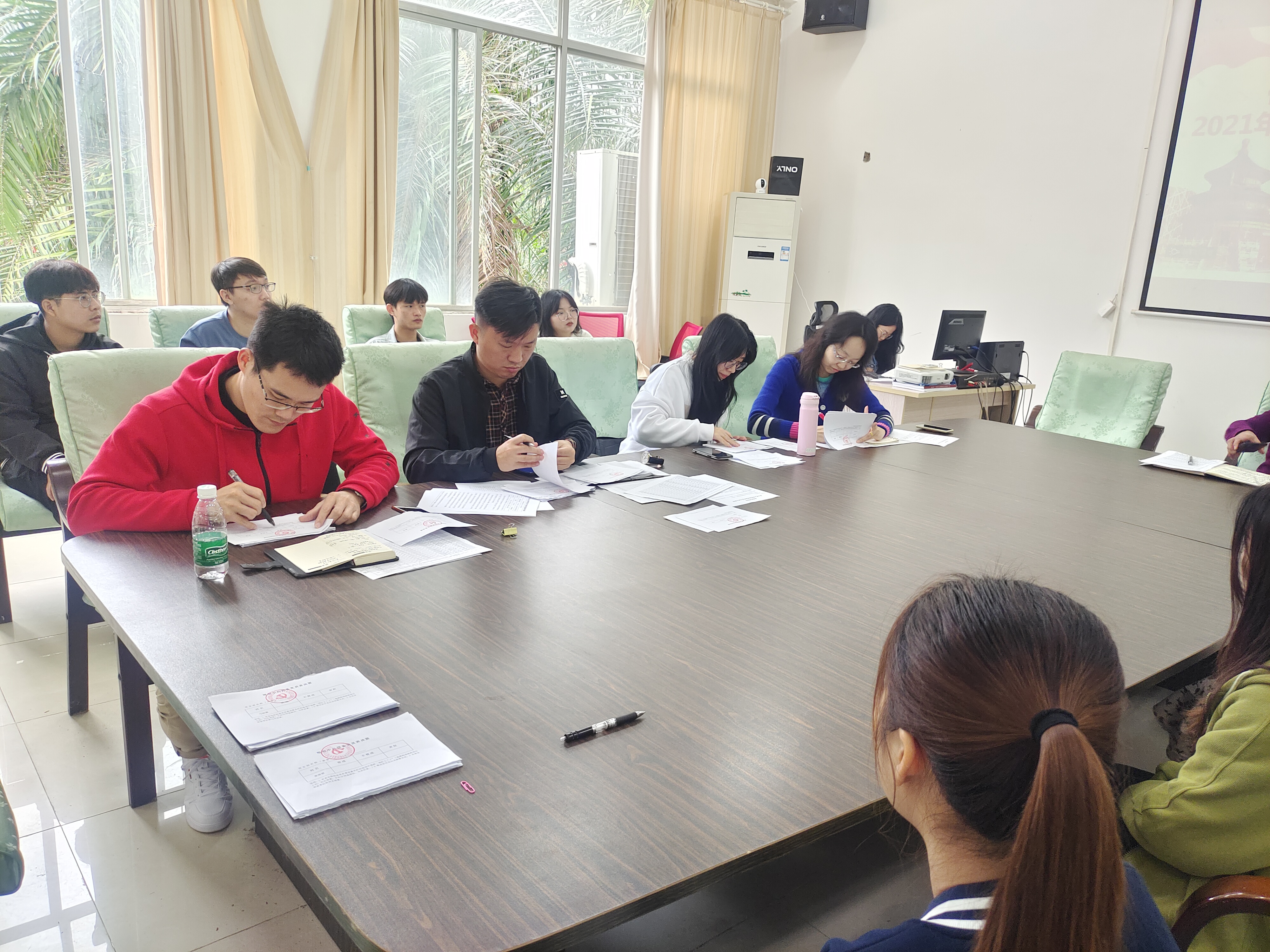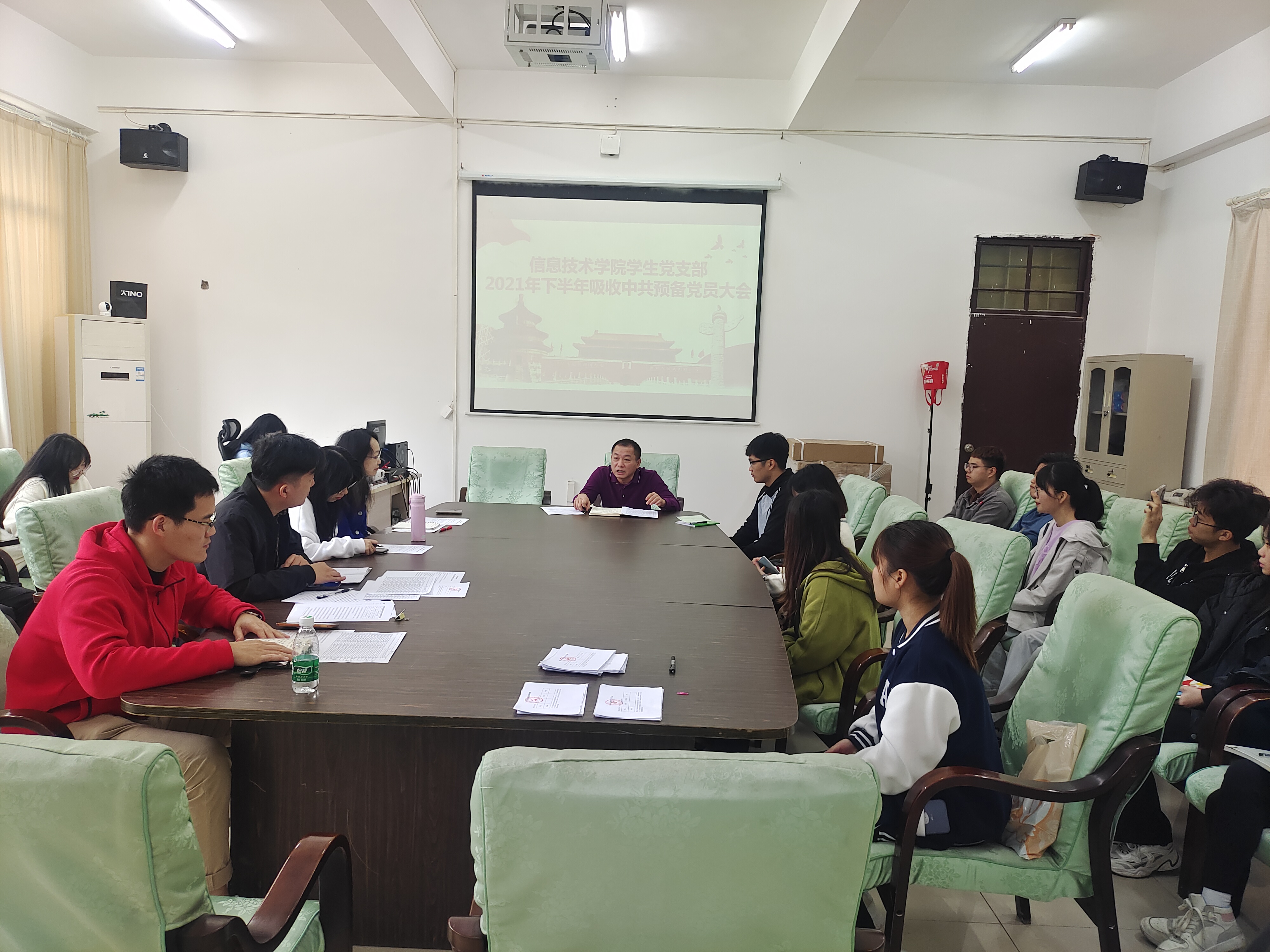 2021年12月20日上午9时,公司员工党支部在4-213开展“2021年下半年吸收中共预备党员大会”。参加本次会议的有:信息技术公司党总支书记孙金、员工党支部书记代晓明、员工党支部组织兼青年委员梁其钰老师、宣传兼纪检委员唐图老师、辅导员郭蓉佳老师等教师党员。
