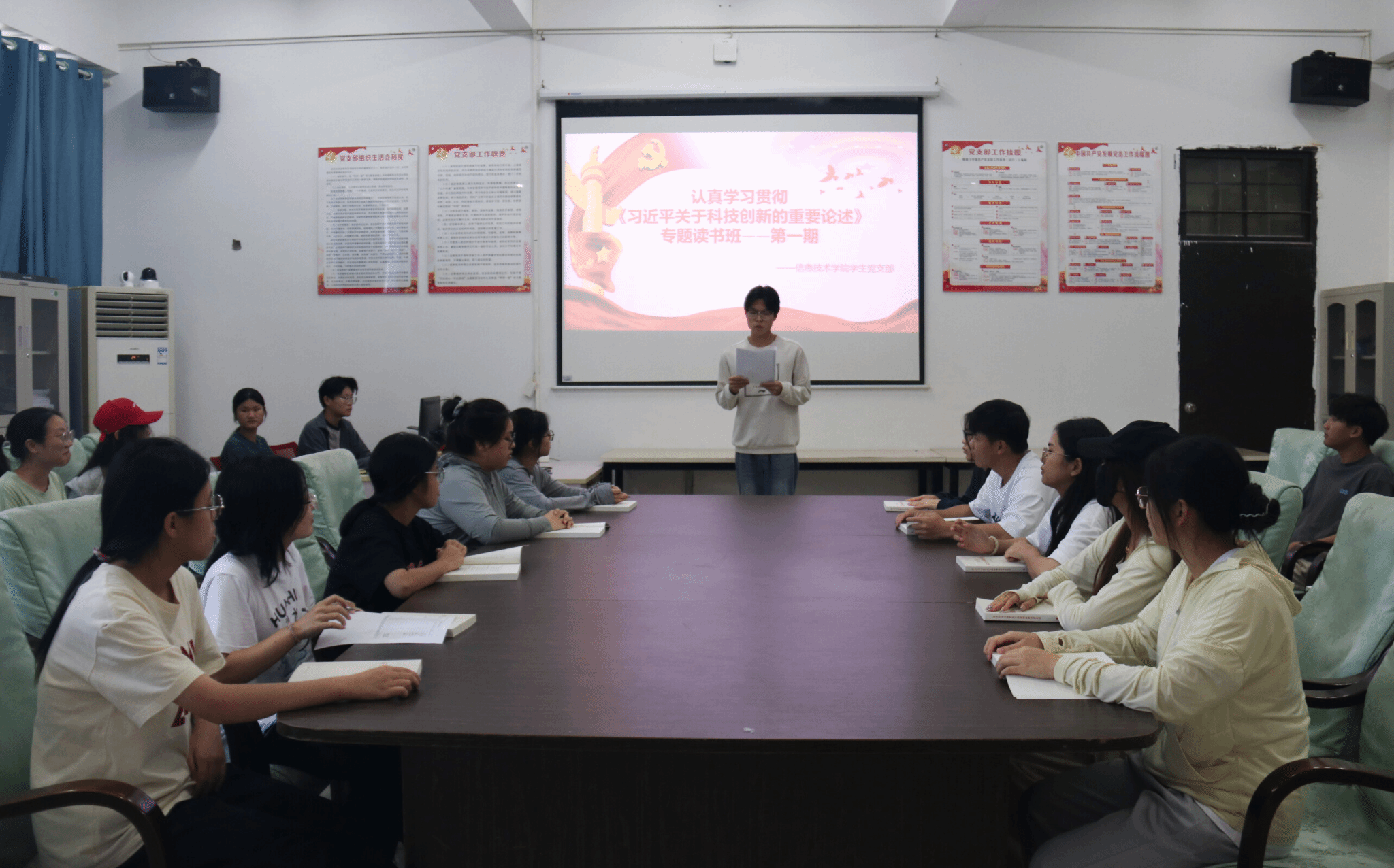 为深入学习贯彻《深入学习习近平关于科技创新的重要论述》,10月31日,公司员工党支部在4-213开展专题读书班第一期,由张文博同学主持,入党申请人、共青团员以及入党积极分子代表共同参加。