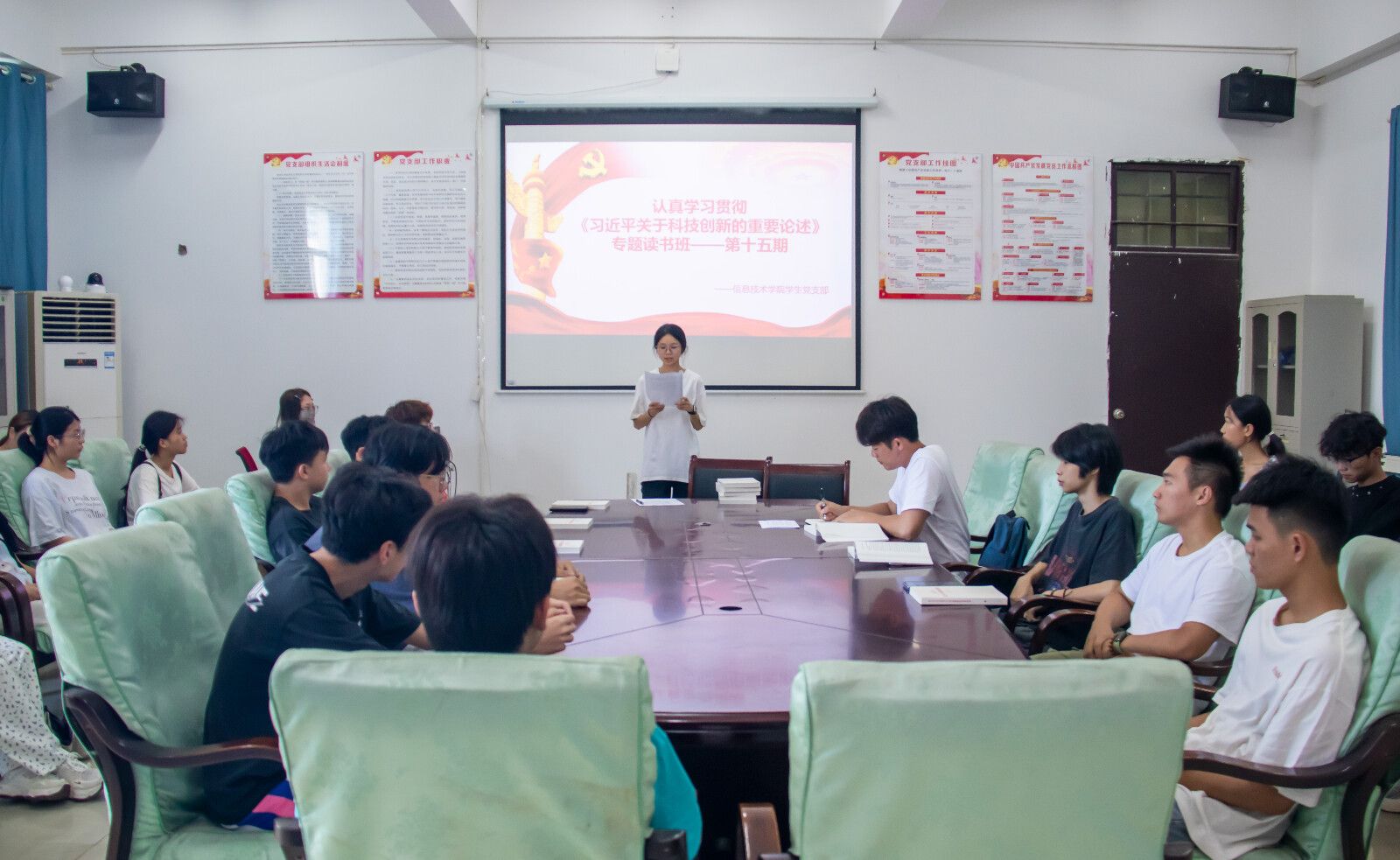 6月9日,公司员工党支部于4-213会议室举办学习贯彻《深入学习习近平关于科技创新的重要论述》第十五期专题读书班。本次读书班由吴彩娜同学主持,入党积极分子、入党申请人以及共青团员代表一同参加。