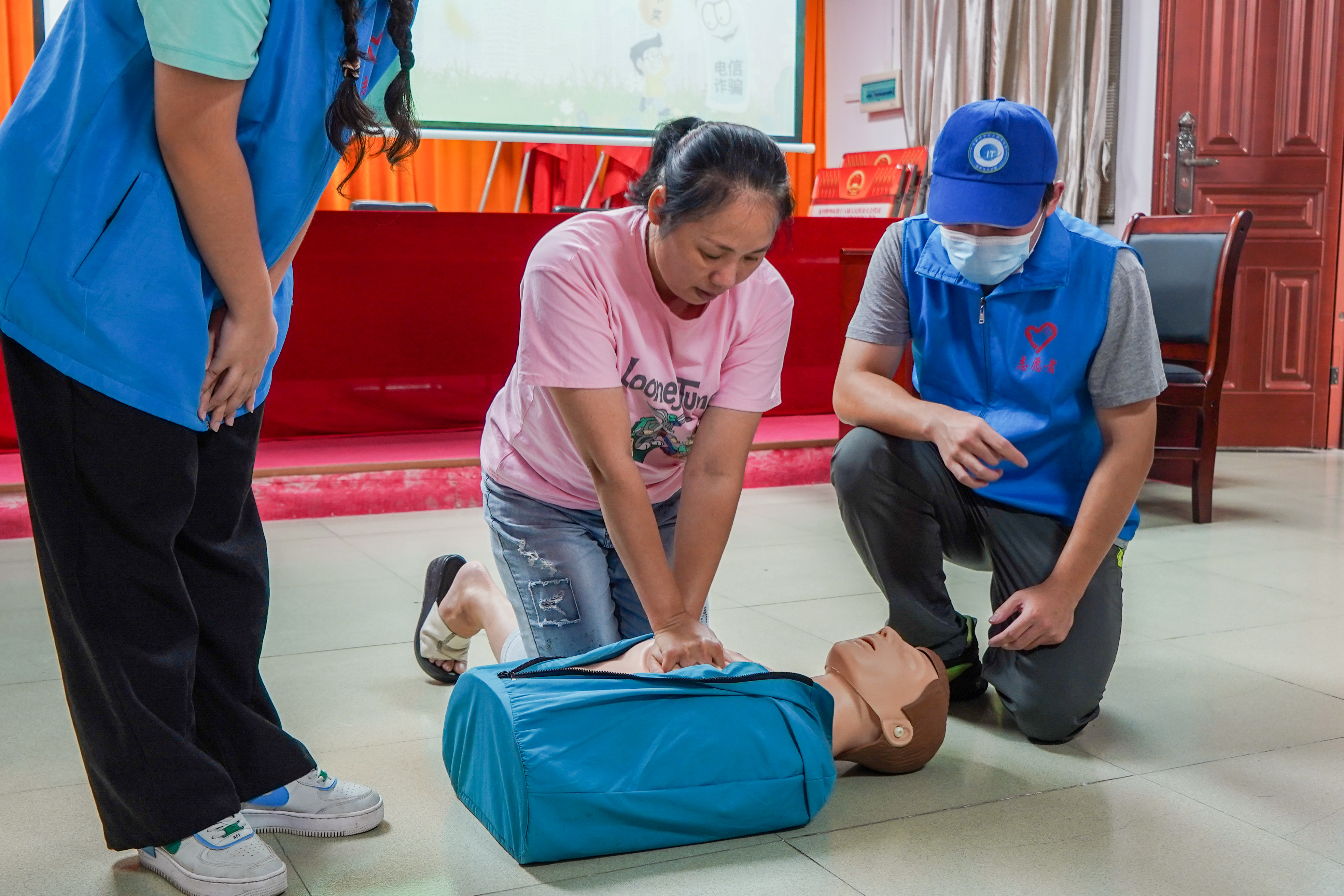 宣讲活动开始后团队成员从“未年人保护法保护什么”、“如何预防校园欺凌”、“防溺水六不准”、“预防火灾及防毒面具、灭火器材如何使用”“交通安全常识讲授”、“急救知识普及与现场教学”、“禁毒科普课堂”、七个方面开展未成年人保护宣讲和中老年人“防诈骗和急救知识普及宣讲。通过案例视频播放、知识科普、发放活动宣传扇和宣传、现场活动竞答、实景示范操作,道具演绎等理论与实践相结合的方法,让孩子们入脑入心。