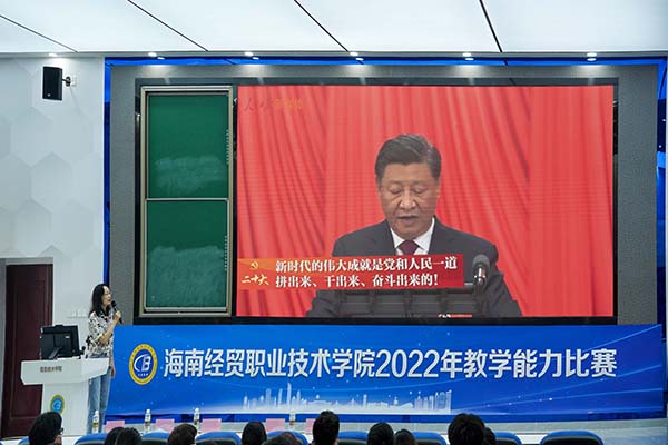 代老师以分享和讲解党的二十大报告金句为切入点,对党的二十大报告进行宣讲,进一步激发了同学们积极主动学习二十大的热情。代老师要求同学们一是要紧跟党的步伐、节奏,不断提高思想认识。二是要勤于实践,学以致用,真正把对党的理论、知识、精神的学习收获贯彻落实到学习生活实践中,用扎实优异的成绩彰显学习效果,发挥先锋模范作用。