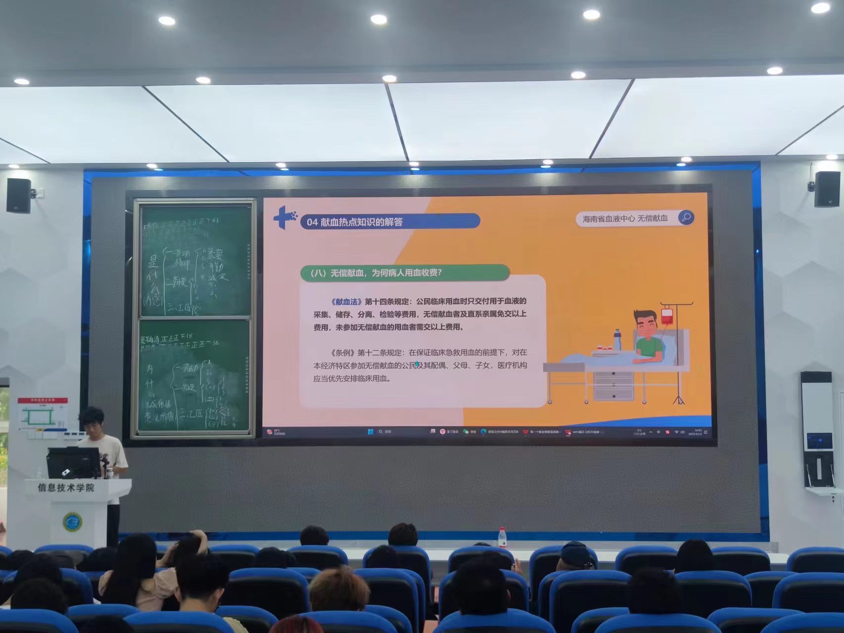 为进一步弘扬志愿服务精神,普及无偿献血知识,鼓励公司员工更加积极地参与无偿献血,太阳集团tyc539青年志愿者协会于11月2 日在4-215开展无偿献血知识讲座。22级数字媒体技术2班全体员工参加讲座,由卢关松同学主持。