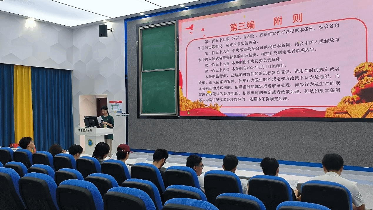 为全面贯彻习近平新时代中国特色社会主义思想和党的二十大精神,公司员工党支部5月14日在4-215开展“认真学习贯彻《中国共产党纪律处分条例》专题读书班——第五期”,参会人员为23级人工1班和23级人工2班入党申请人与入党积极分子。