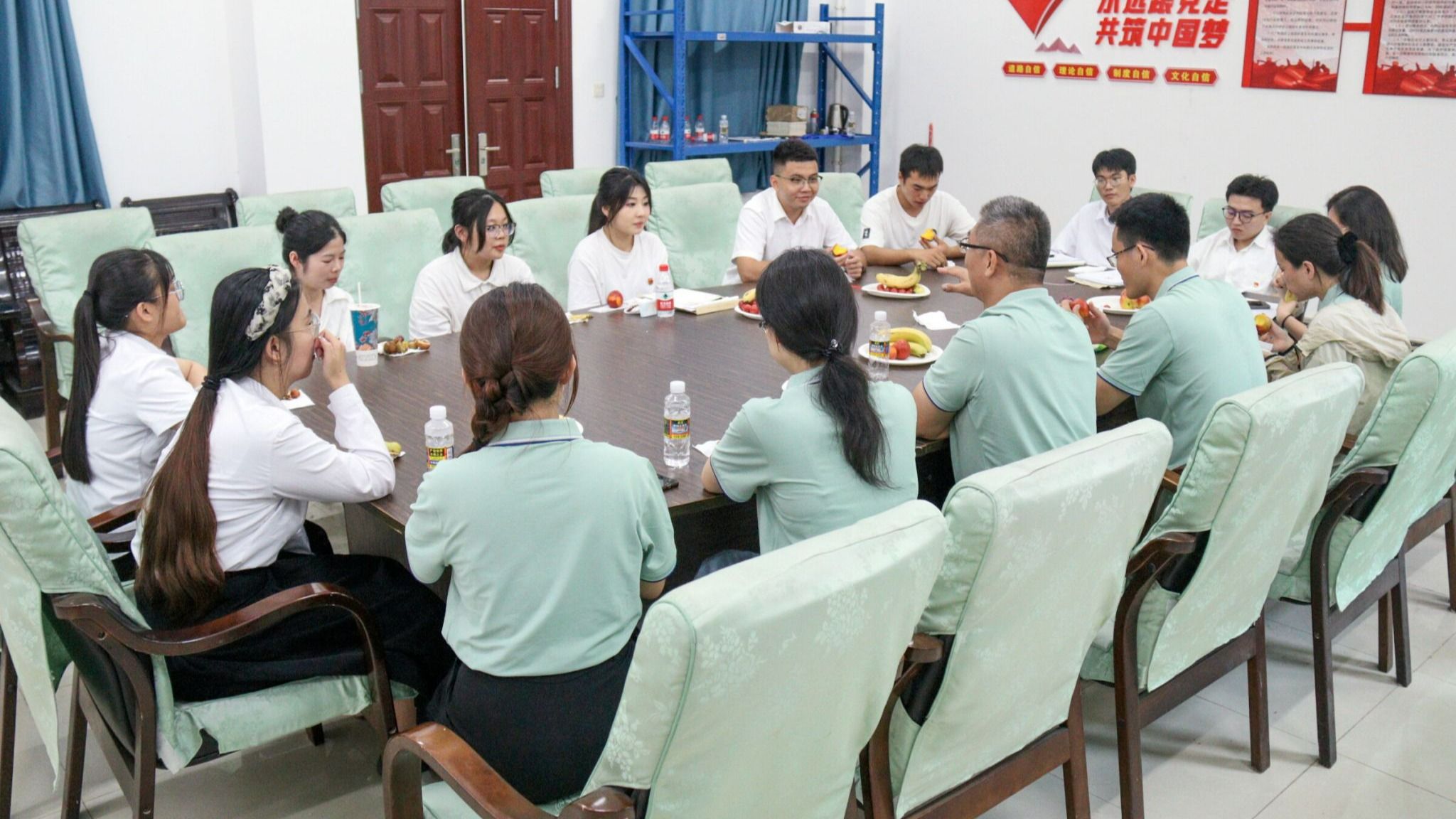 为激励毕业生壮志凌云地追梦,勇往直前地挺进,在各自岗位上拼搏奋斗,绽放青春的绚丽光彩,6月19日下午,公司召开毕业生座谈会,会信息技术公司党总支副书记黄守官老师,员工党支部书记代晓明老师,学工办负责人唐图老师,辅导员王智娴、蔡守正、吴淑亲老师以及毕业生代表参加。