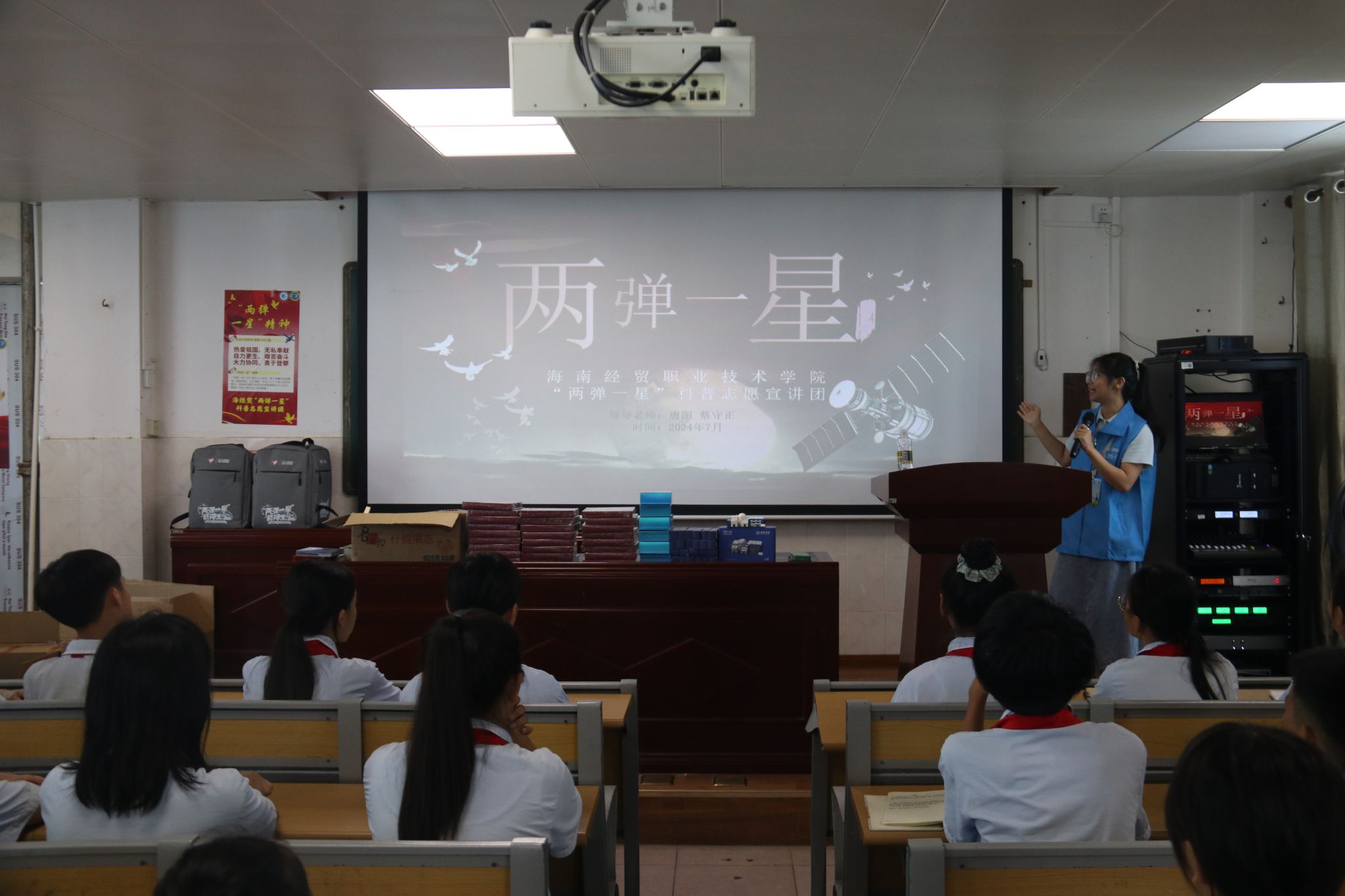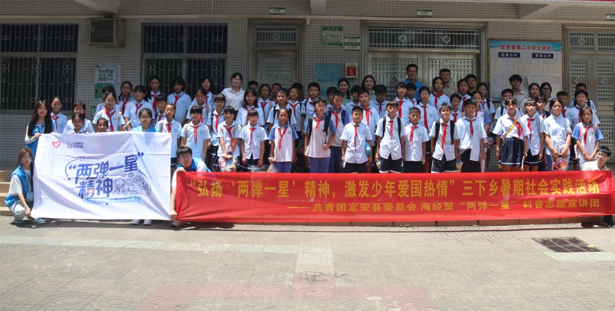 为进一步增强青少年的国防观念、科技意识和历史认知, 2024年7月7日-7月8日,太阳集团tyc539“两弹一星”科普志愿宣讲团联合定安团委深入到定安县第二小学、定安县第三小学开展了“弘扬‘两弹一星’精神,激发少年爱国热情”暑期“三下乡”社会实践活动。