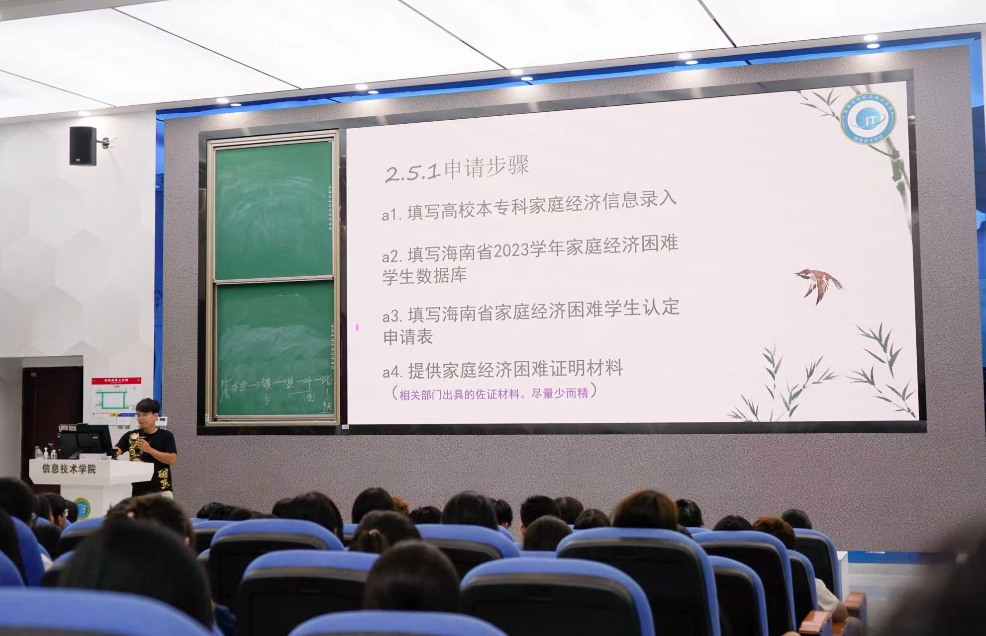 宣讲会上,符老师首先为新生们详细介绍了生源地助学贷款、助学金、奖学金等一系列资助政策。他不仅解释了各项政策的具体内容,还清晰地讲解了申请步骤,确保每位有需要的员工都能顺利获得经济支持。