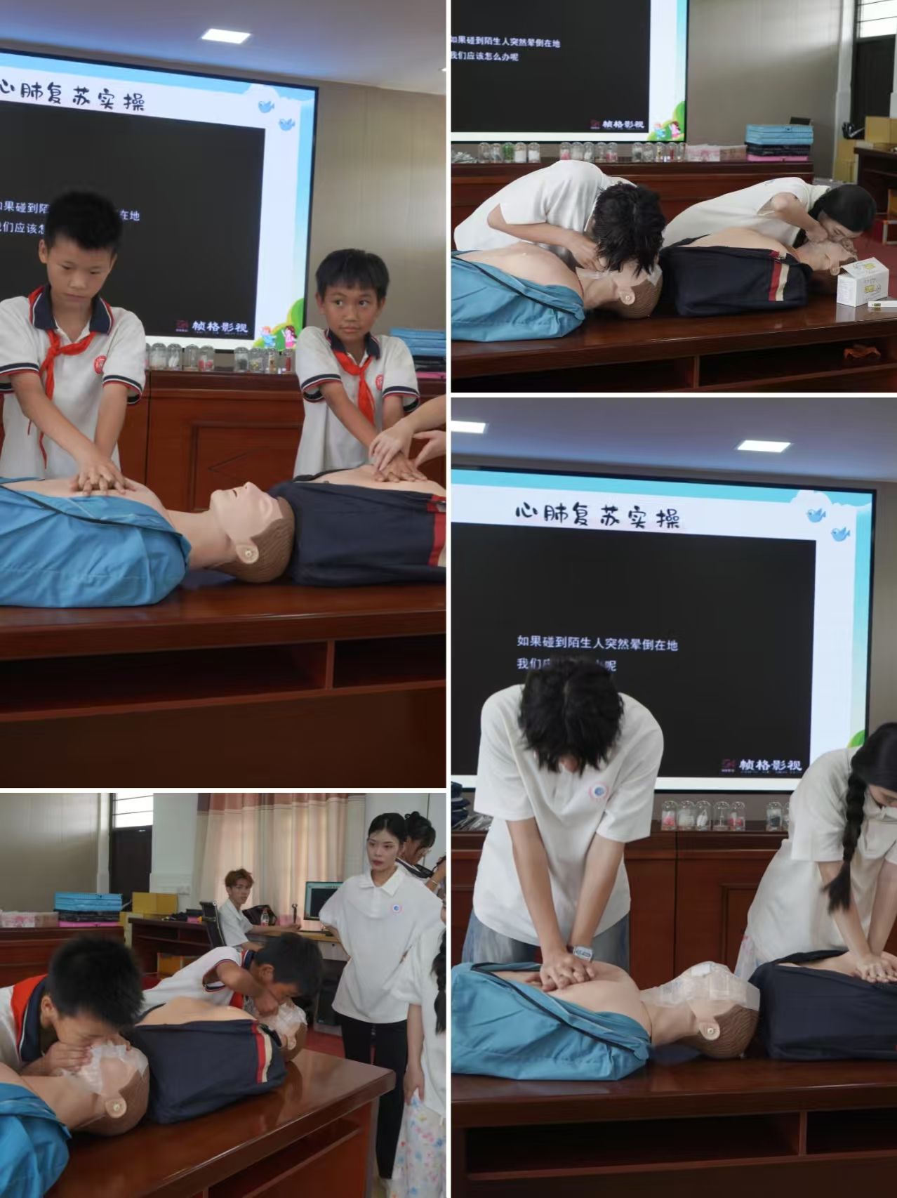 宣讲环节紧扣“安全三防”“食品安全”“毒品危害”“交通安全”四个主题,以理论与实操深度融合的模式,让知识真正实现“入脑入心”。在安全三防课堂,宣讲团成员先抽丝剥茧般拆解灭火器原理与使用步骤,随后以“提拔握压”的简单口诀,引导孩子们登台实操,借扑灭模拟火源的过程,让灭火技能化作沉浸式体验;紧接着以人体模型为依托,清晰演示心肺复苏按压、人工呼吸等关键动作,再邀请孩子们亲身实践,稳稳筑牢急救知识根基。