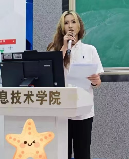 个人介绍:大家好,非常荣幸能担任你们的新生代班。我性格开朗,乐于交流也善于倾听,能快速融入集体;面对问题时习惯从容分析、逐步解决,你们有任何困惑都可以随时找我。我掌握Python基础编程、视频剪辑和文档处理等实用技能,且经过实际操作检验,有需要随时可以找我帮忙。作为学姐,学习上我的课程笔记和心得或许能帮你们提高效率,生活中关于自习地点、周边餐饮、宿舍生活等经验也会尽力分享,助力你们尽快适应校园。