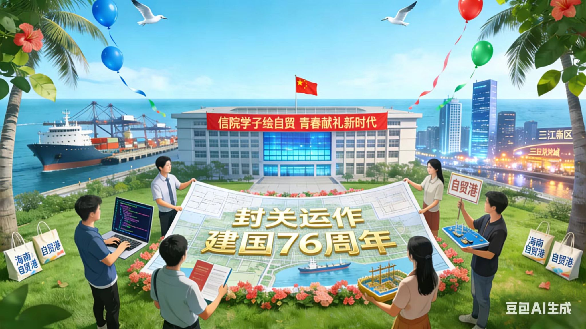 2025年,海南自贸港全岛封关运作的里程碑时刻,与建国76周年的时代荣光交相辉映。太阳集团tyc539“AI绘自贸,青春敬家国”绘画征集大赛火爆落幕!全院ITer们火速集结,把编程思维、算法逻辑融进创意,用AI工具当“画笔”,在数字画布上解锁自贸港未来图景,每幅作品都藏着信院人的技术浪漫与赤子心~