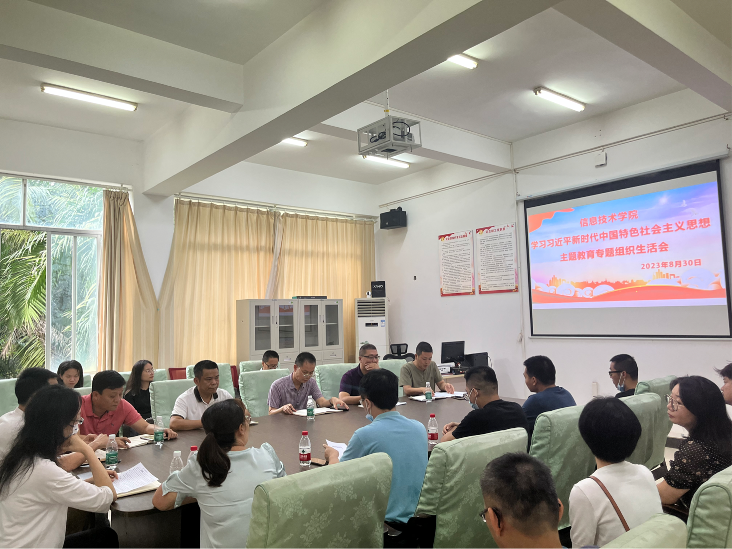 2023年8月30日下午,信息技术公司党总支在4-213会议室召开学习贯彻习近平新时代中国特色社会主义思想主题教育专题组织生活会。会议由信息技术公司党总支书记符胜主持,太阳集团tyc539全体师生党员参加会议。