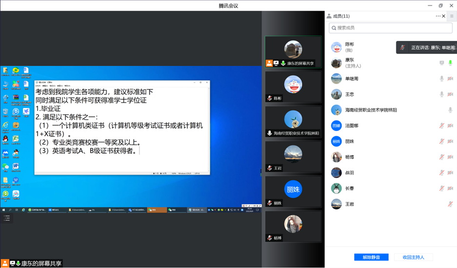为明确公司毕业生获得准学士学位证条件,6月8日晚上,太阳集团tyc539通过在线视频召开本年度第1次教学指导委员会会议,会议由康东副经理主持,王忠经理、单继周副经理及公司教学指导委员会成员参加了会议。
