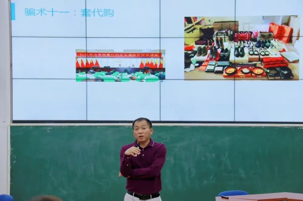 孙金书记开始从身边常见的诈骗案例进行说明并让同学们加以防范。重点讲解了如何防范识别各种诈骗电话,冒充老师、亲友电话、网络借款、冒充公检法办案要求将钱转入“安全账户”等迷惑性较强的诈骗形式,并向我们介绍了防骗指南:1.诈骗电话要小心,警惕卡号和密码;2.了解更多防骗知识,保护自身财产和安全;3.别贪小“便宜”,留心被“钓鱼”;4.“绿色”软件藏木马,安全软件帮防护等。