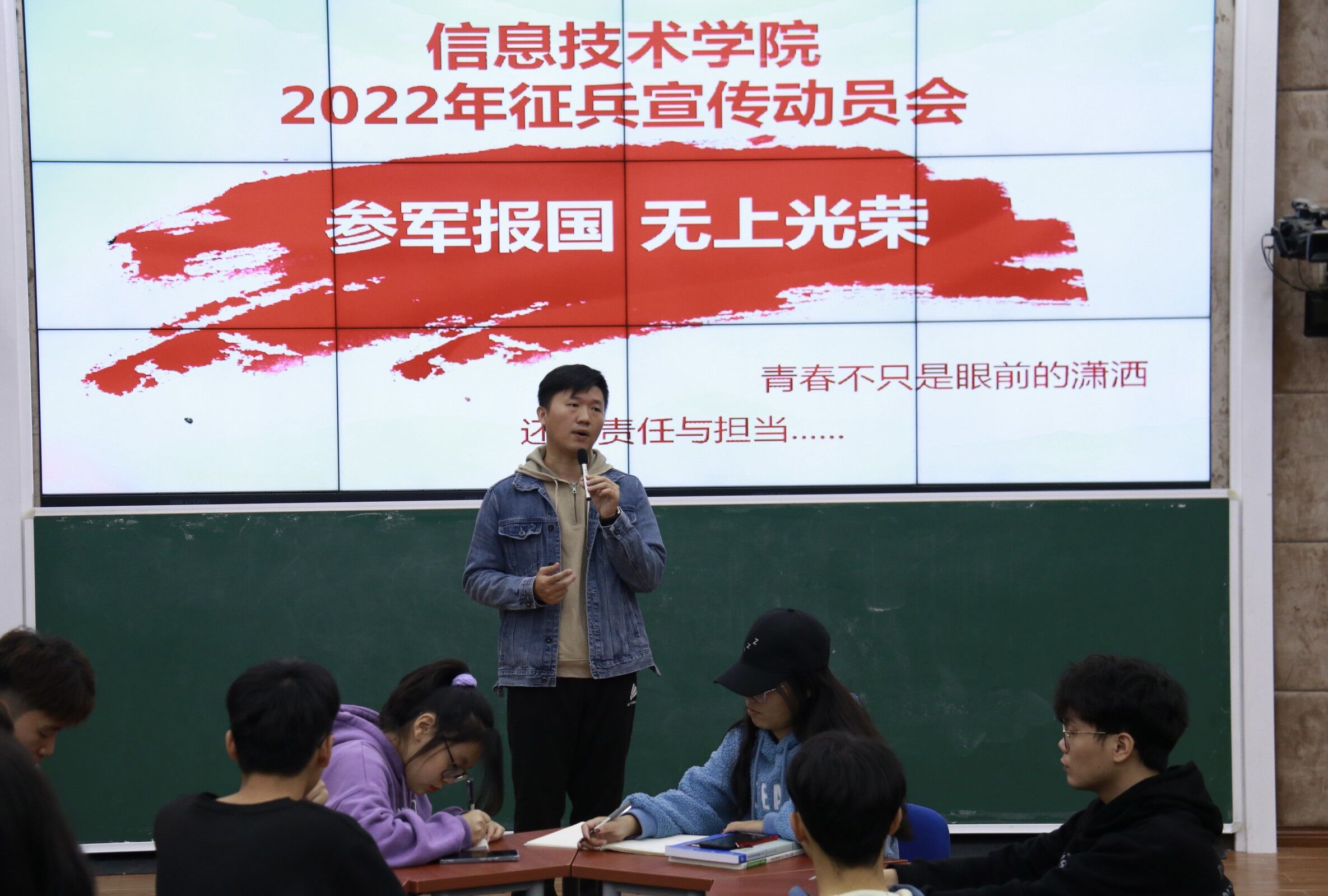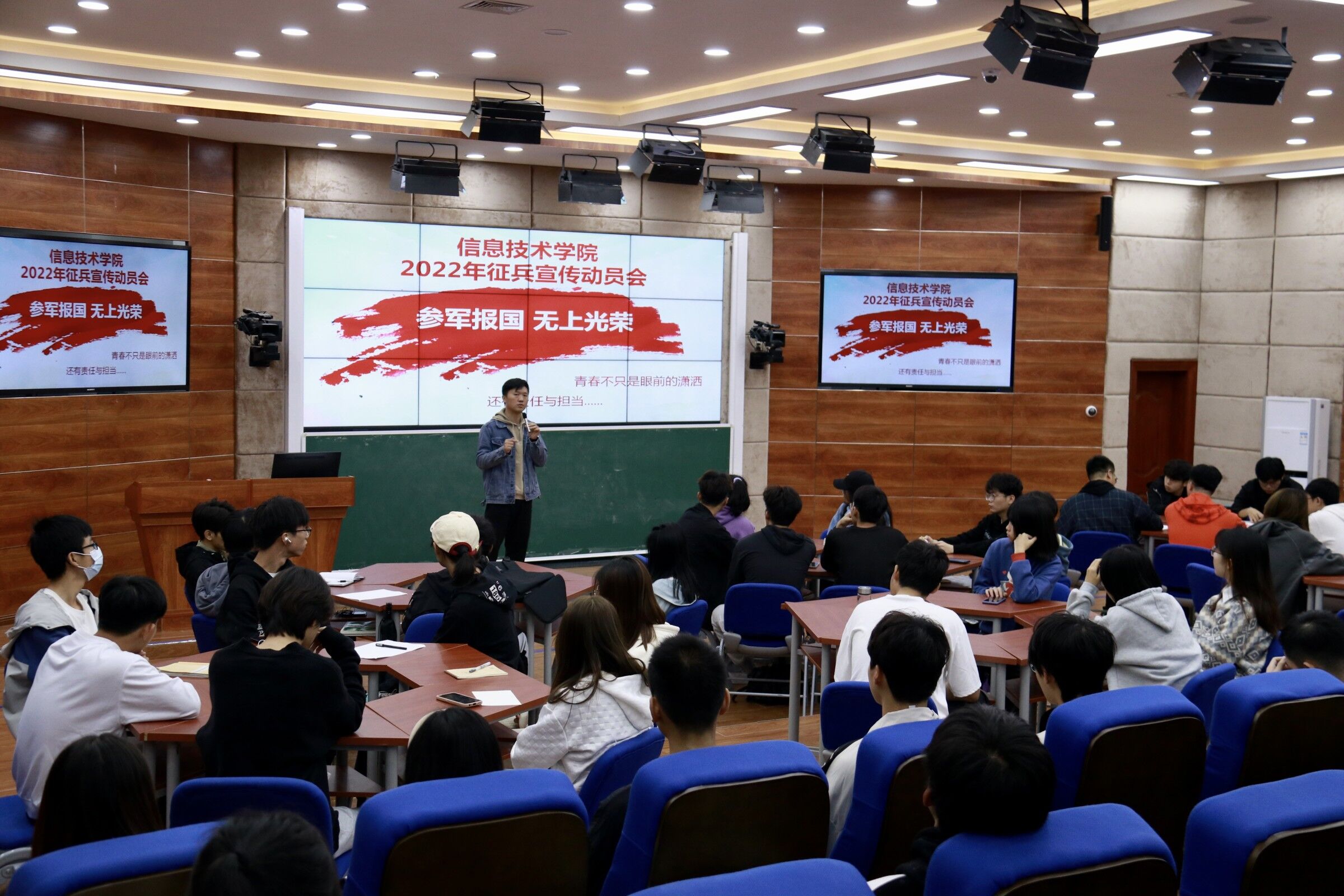 2021年12月20日(青年媒体中心 宋岱熹讯),为鼓励当代老员工响应国家号召,积极报名参军入伍,公司于中午12:30在沉浸式教室2-215开展2022年征兵宣传动员会,本次动员会由学工办主任梁其钰老师主持,太阳集团tyc539全体团学成员参加。