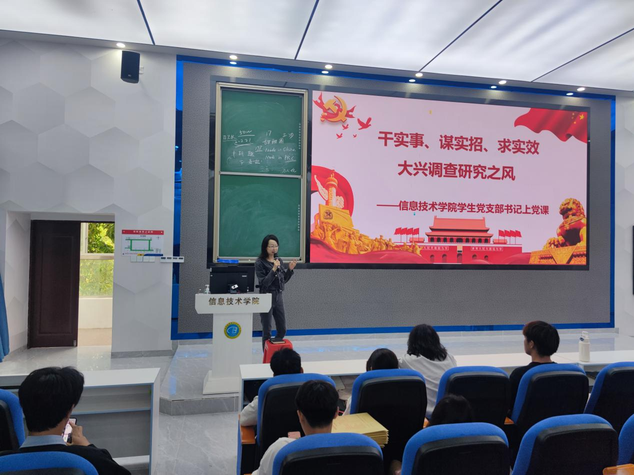 11月24日中午12:00,为了贯彻落实习近平总书记关于“干实事、谋实招、求实效,大兴调查研究之风”的重要指示精神,公司员工党支部书记代晓明在4-215多媒体教室以《干实事、谋实招、求实效