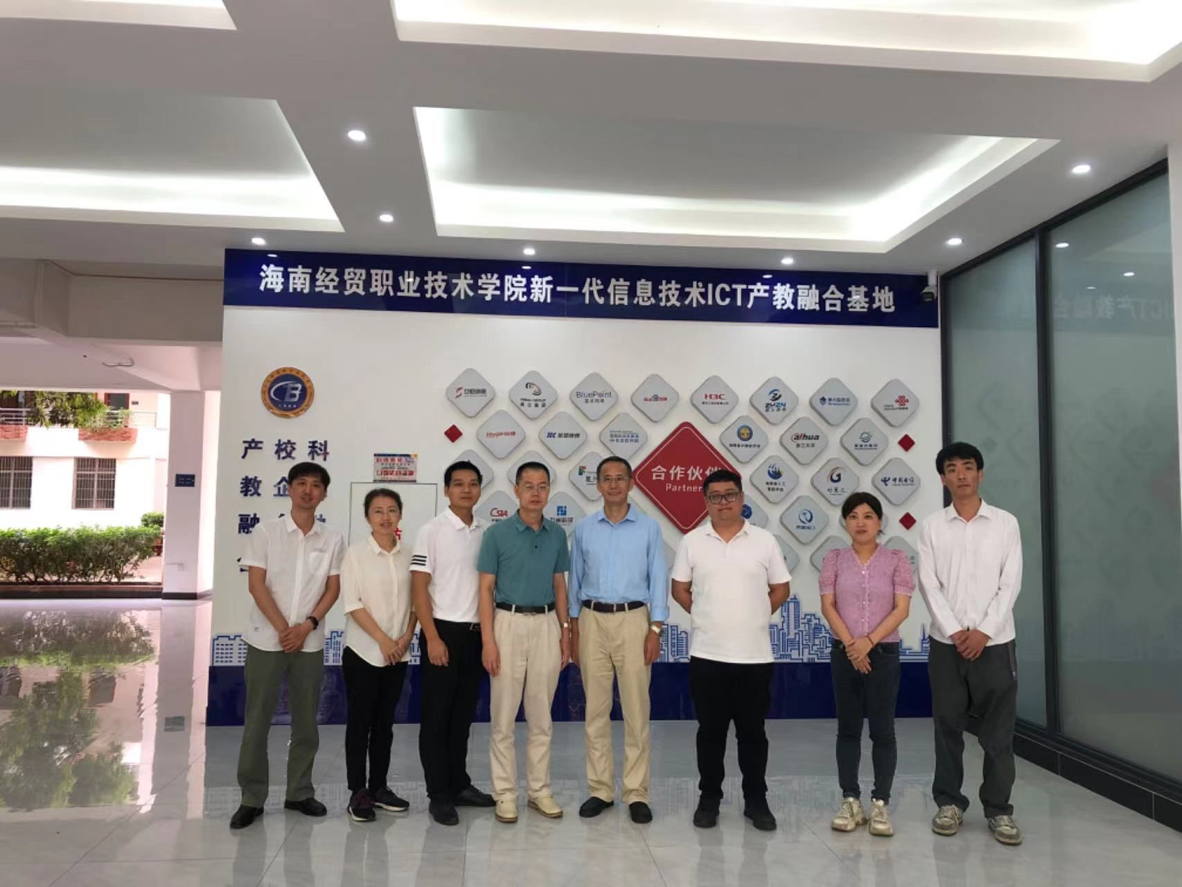 会后,王忠经理陪同客人参观了新一代信息技术ICT产教融合基地智能媒体与语音工程研究中心,并在基地合影留念。