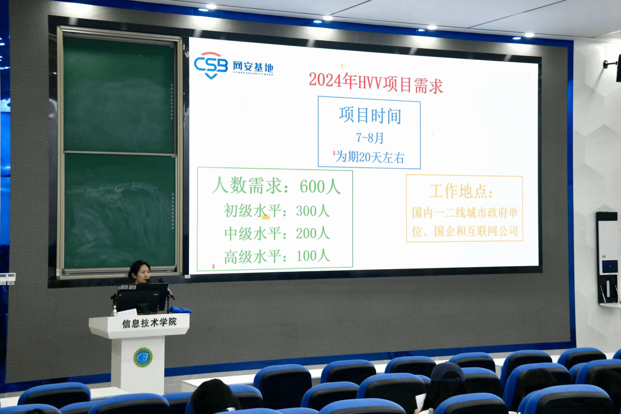 活动伊始,思雅老师给在场的信院学子播放了关于网络安全的视频,有效地调动了学子们了解网络安全内容的积极性和主动性。随后,思雅老师向同学们介绍网络安全人才培养的现状、挑战与对策以及未来的发展趋势。她表示,此次网络安全人才培养选拔项目全程免费,旨在为广大学子提供一个全面了解网络安全领域、拓宽视野、提升技能的平台。