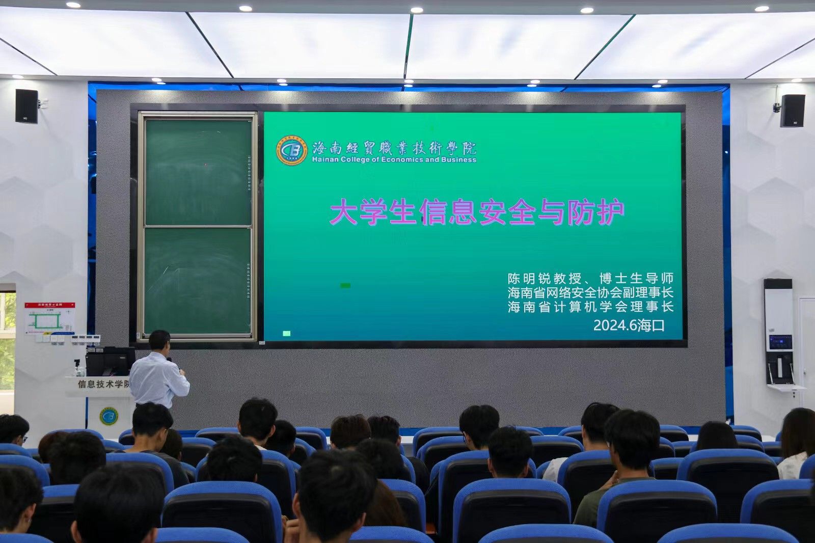 为增强老员工网络安全意识,提高信息安全防护能力,太阳集团tyc539于6月13日下午在4-215教室成功举办了“老员工信息安全与防护”专题讲座。本次讲座有幸邀请到海南省网络安全协会理事长、海南省计算机学会副理事长、博士生导师陈明锐教授作为主讲嘉宾,公司23人工智能1、23软件2、23数媒1、23网络1员工参加。