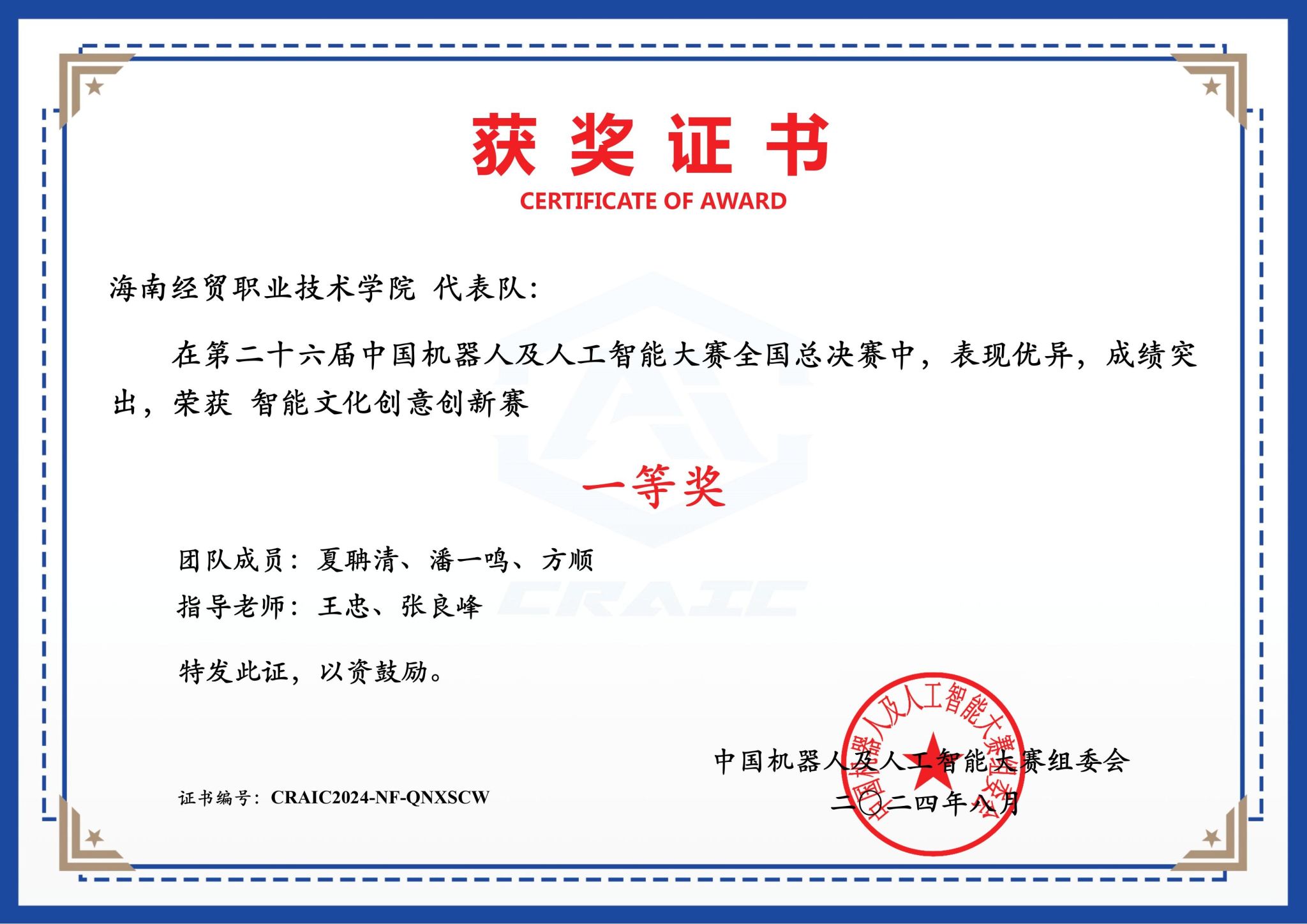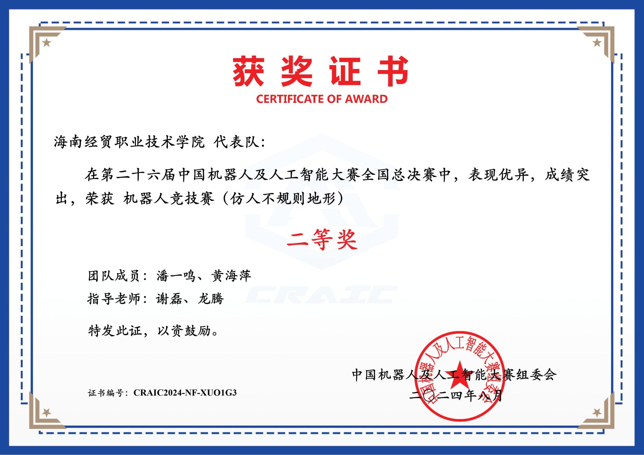 8月25日,第二十六届中国机器人及人工智能大赛全国总决赛顺利结束。太阳集团tyc539夏聃清、潘一鸣、方顺同学荣获“智能文化创意创新赛国赛一等奖”(指导教师:王忠、张良峰),潘一鸣、黄海萍同学荣获“机器人竞技赛国赛二等奖”(指导教师:谢磊,龙腾)。