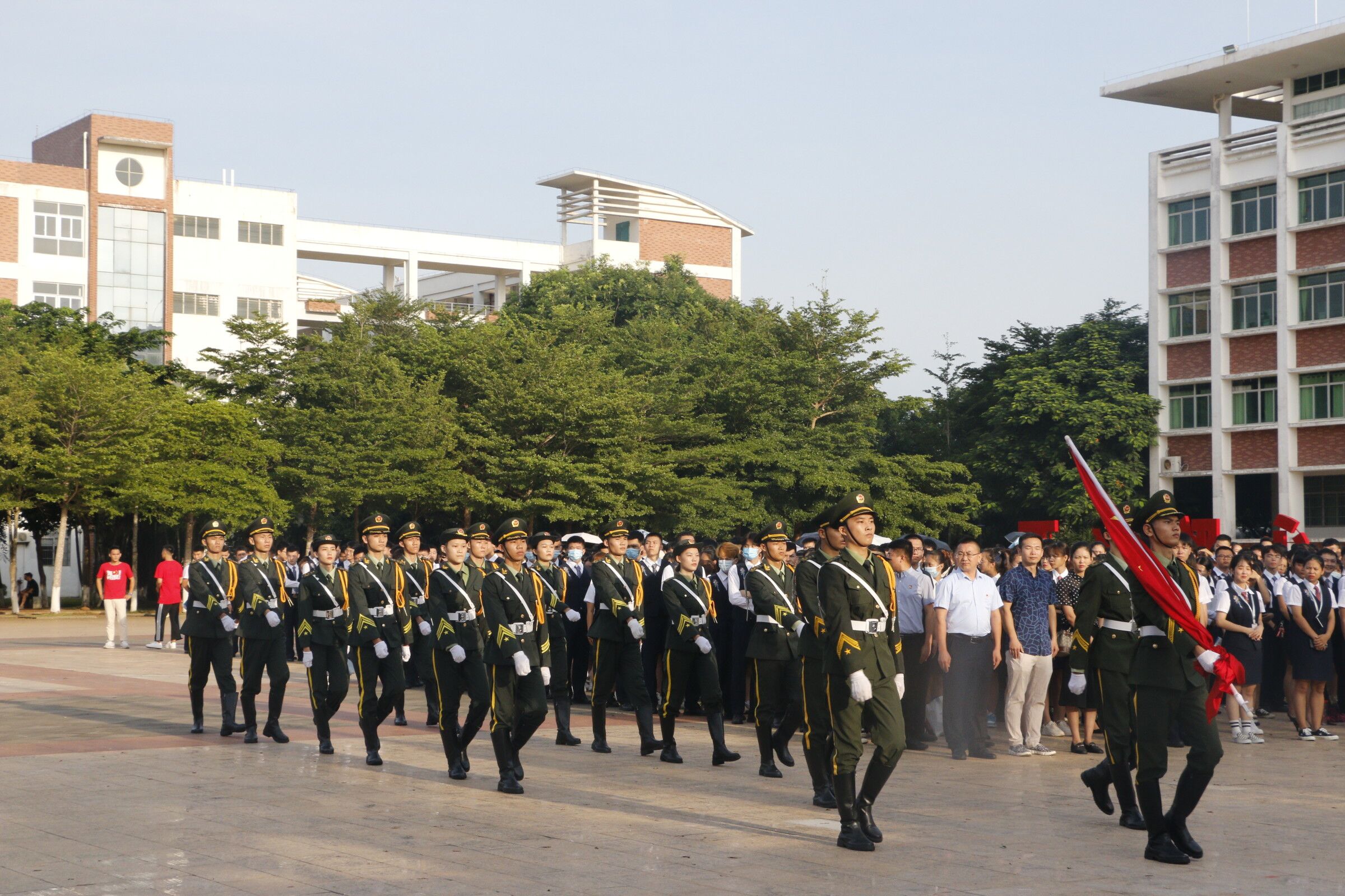 2020年9月7日(院青年媒体中心 李名总报道)讯,公司于9月7日早晨7:45在经贸广场举行“同心战疫我担当,青春建功自贸港”主题升旗仪式。出席本次升旗仪式有二级院校书记、副书记,全体辅导员,全体在校生。