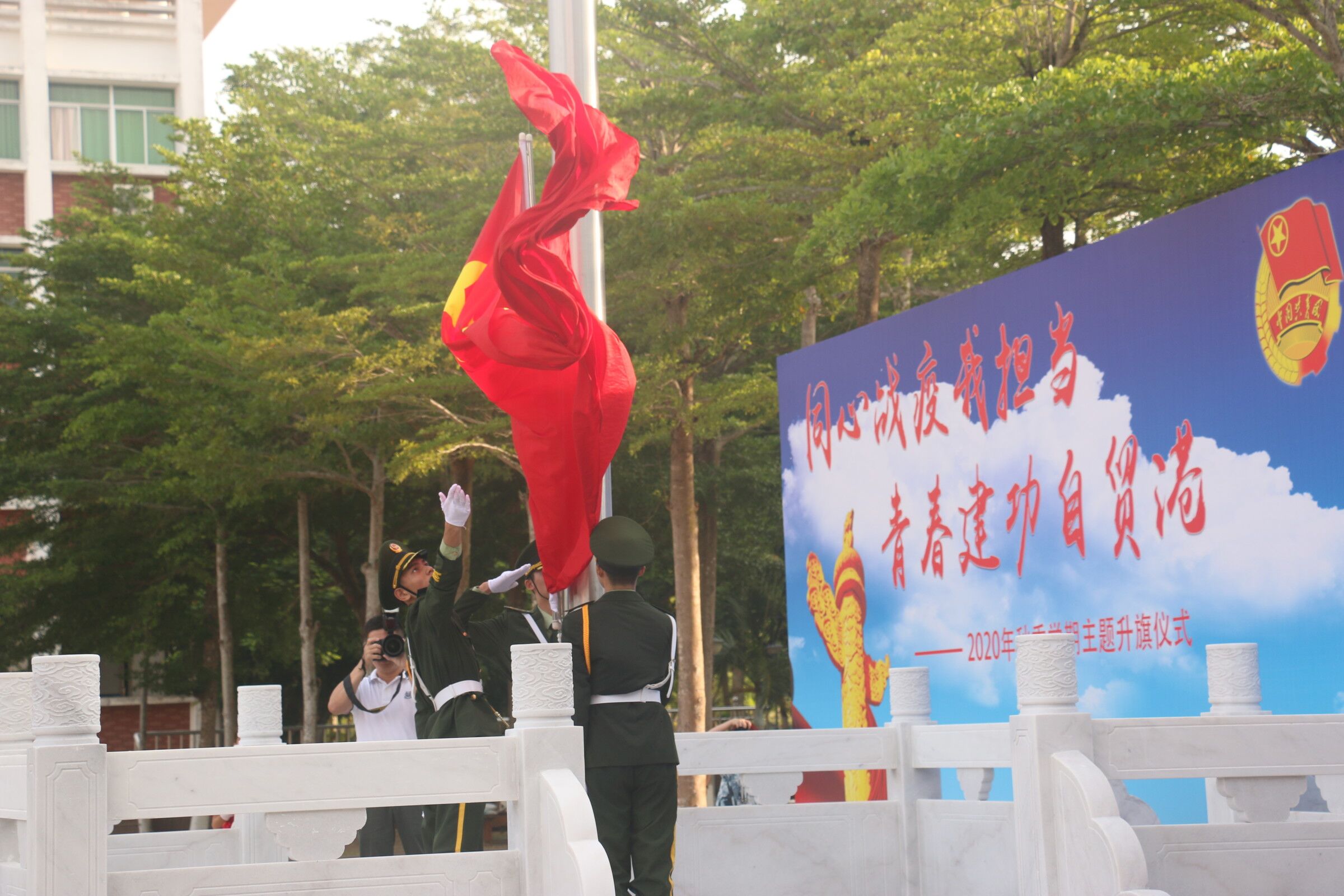 公司举行“同心战疫我担当,青春建功自贸港”主题升旗仪式