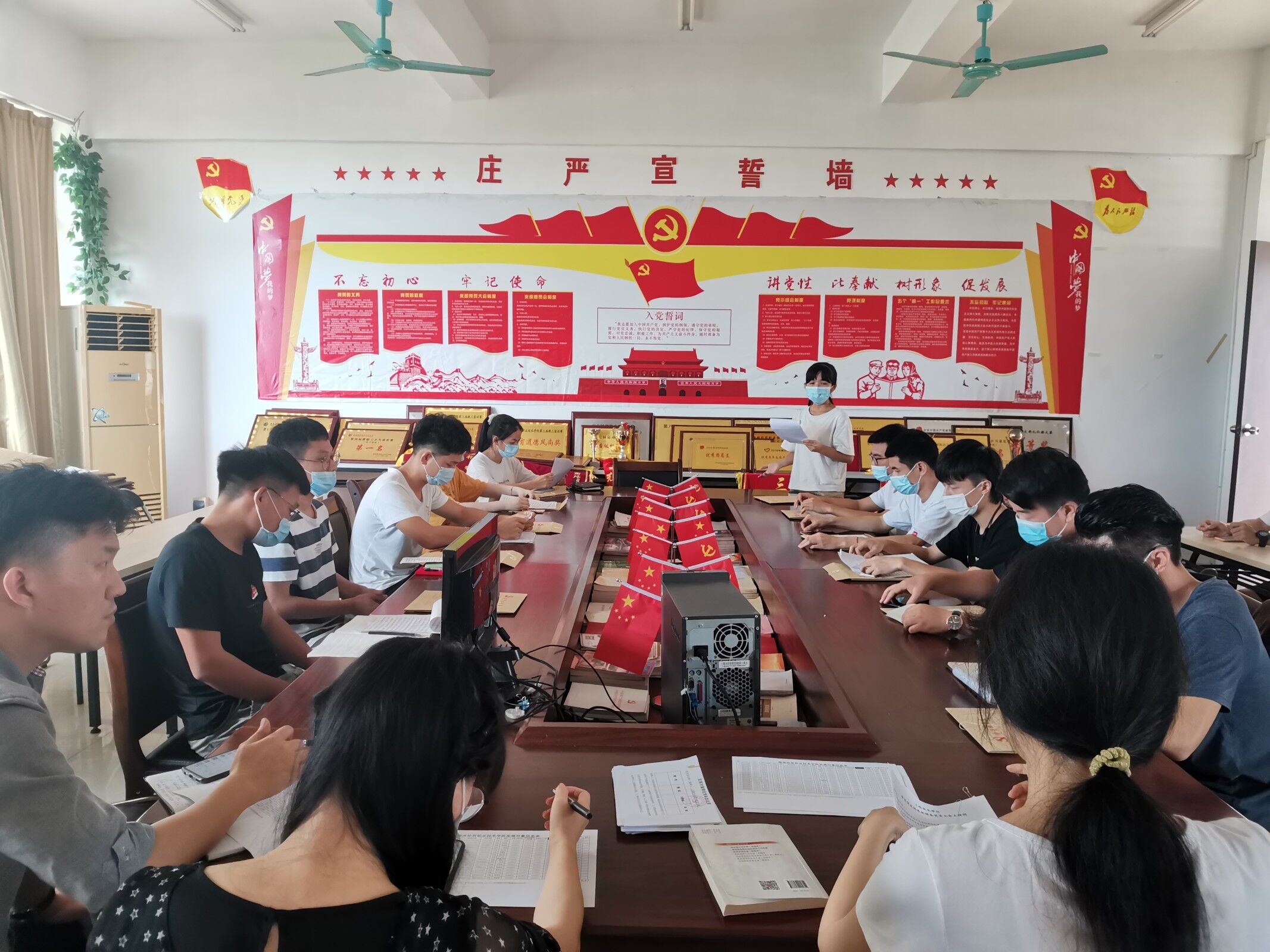 首先,大会的第一项内容是16名发展对象汇报自身近一年的工作状态、学习心得、发展目标、思想进步,并表达了他们的入党动机和对加入中国共产党的强烈渴望与决心。随后,大会第二项是由入党介绍人代晓明老师与郭蓉佳老师对16名发展对象在学习、工作、实践活动等方面进行评价,代晓明老师依次指出了16名同志的一些不足之处,并对他们作为员工干部以来的付出给予了肯定与感谢;郭蓉佳老师、梁其钰老师也依次发表了自己的相关意见。大会第三项是由在场有表决权的正式党员对16名发展对象进行无记名投票,根据表决结果,公司成功将16名发展对象吸收为预备党员。最后,在座全体党员老师和发展对象进行了庄严肃穆的入党宣言,16名发展对象依次发表自己的感言。