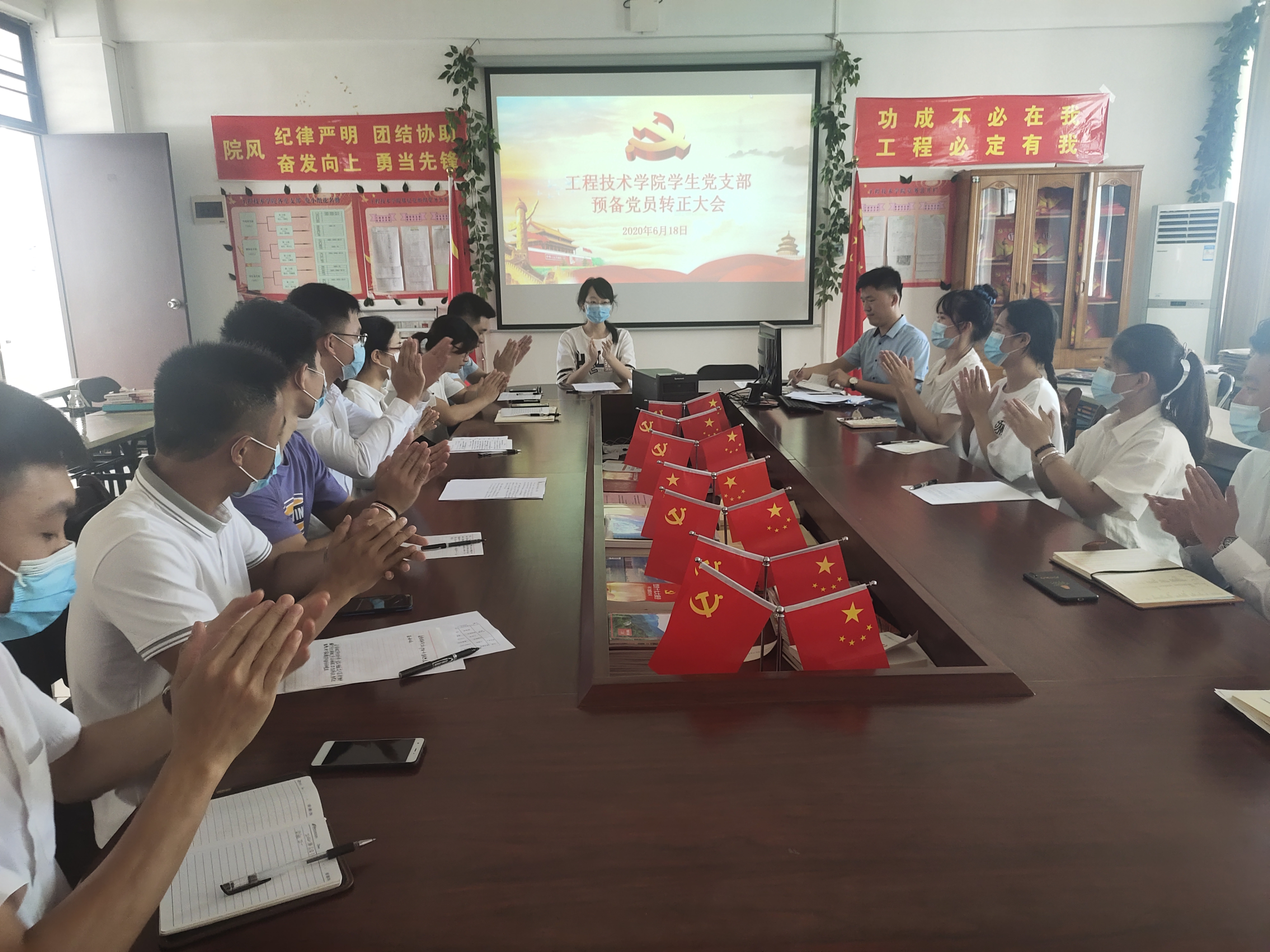 2020年6月18日(院青年媒体中心 符方蕾报道)讯,工程技术公司员工党支部预备党员转正大会于上午10:00在2-406党员之家成功举行,公司党总支副书记陈亚芳老师、学工办主任梁其钰老师、员工党支部书记代晓明老师、团学负责人周恺老师4位正式党员出席本次会议,大会由公司员工党支部书记代晓明老师主持。
