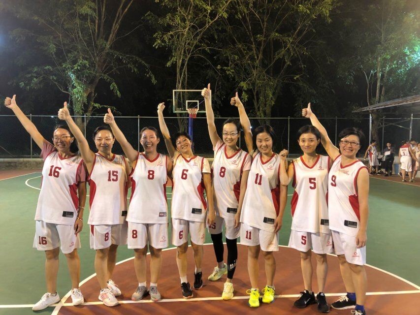 2019年9月27号(院青年媒体中心)讯,9月25日晚19:30在篮球场公司女教职工代表队迎来了公司第四场篮球赛。本场比赛为公司女队VS机关女队。赛前双方热身、试球,拉拉队也迅速地集结到场。