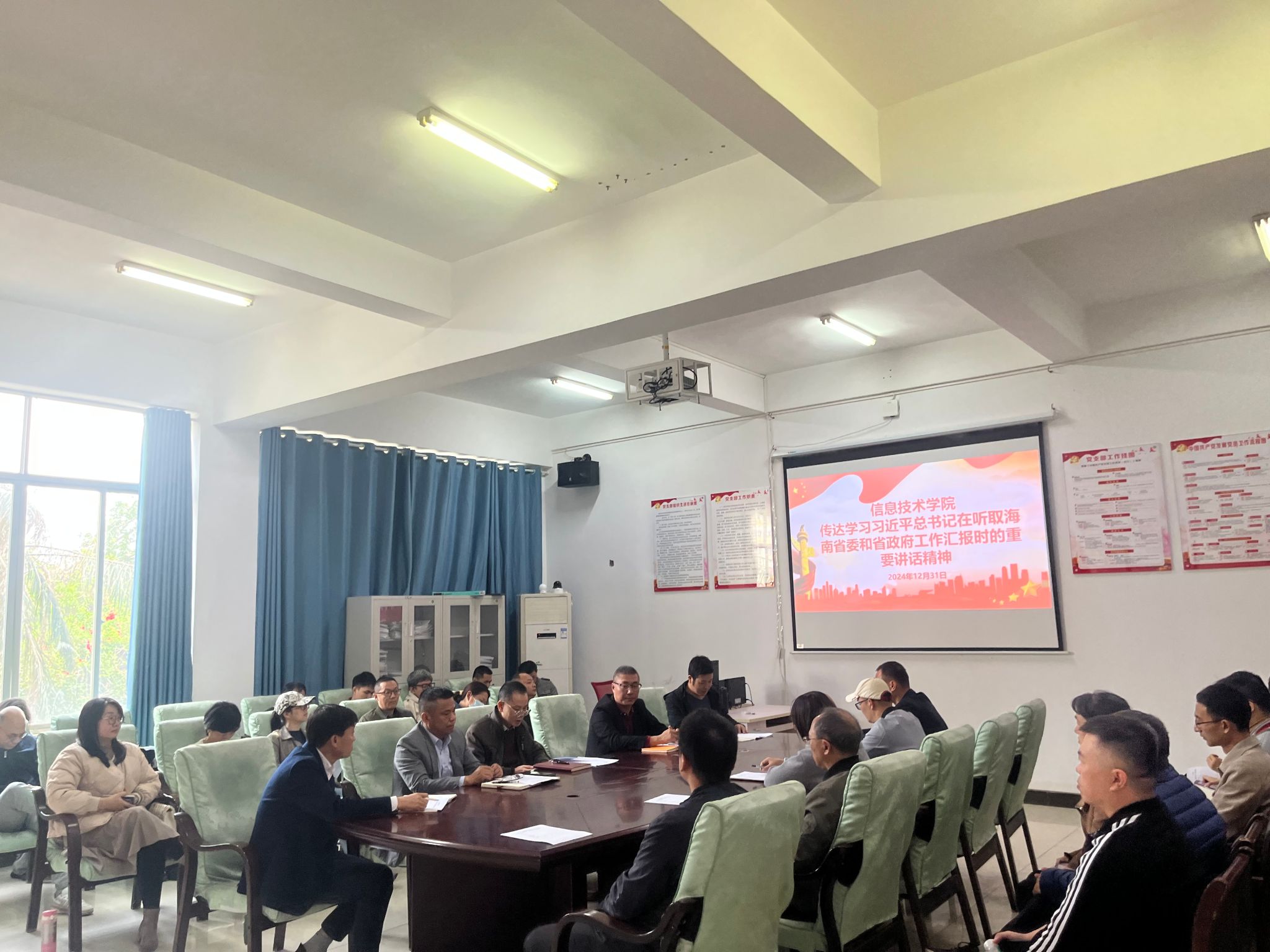 2024年12月31日上午,太阳集团tyc539在4-213会议室召开专题会议,认真传达学习习近平总书记在听取海南省委和省政府工作汇报时的重要讲话精神。会议由王忠经理主持,信息技术公司党政领导及全体教职工参加会议。
