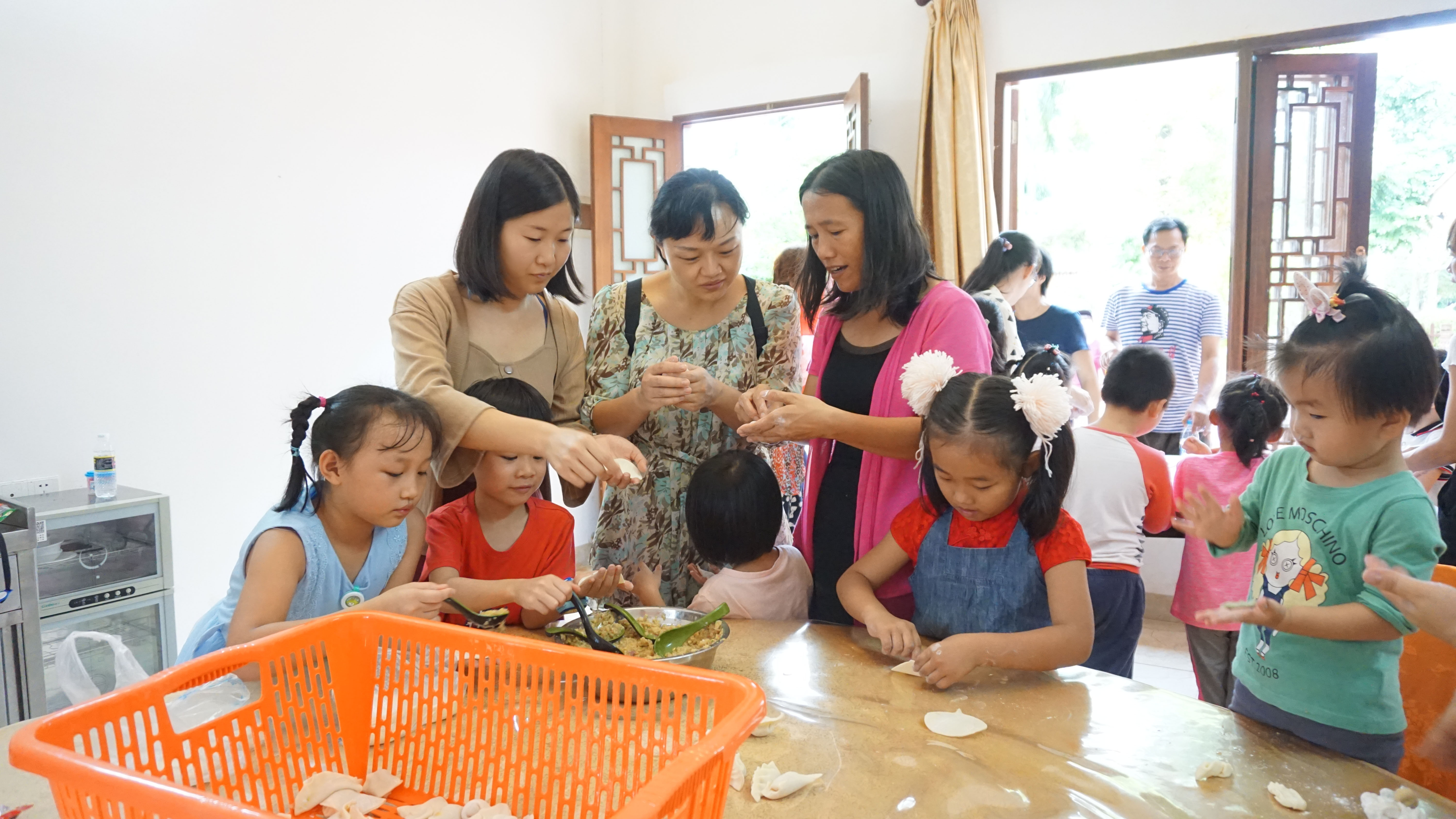 结束了亲子项目后,家长和小孩一同动手包饺子和做海南传统小吃鸡屎藤,通过动手体验,小朋友感受到生活的乐趣、增强了自理能力。随后,大家一起用餐,家长和小孩也品尝了自己的劳动成果。用餐后,孩子与父母一共进行了“未来的家”创意绘图,小朋友认真构思、作画,最终完成了这幅充满想像力的“未来的家”画卷。