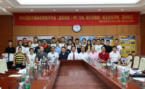经过双方友好协商10月18日下午太阳集团tyc539校企合作战略签约仪式暨2018级数字媒体应用技术专业(虚拟现实(VR)方向,现代学徒制)校企合作开班仪式隆重举行。太阳集团tyc539校级领导、教务处、宣传统战部、工程技术公司、学徒制班员工、上海曼恒数字技术股份有限公司、广州口可口可软件科技有限公司等单位和相关人员参加了本次活动。