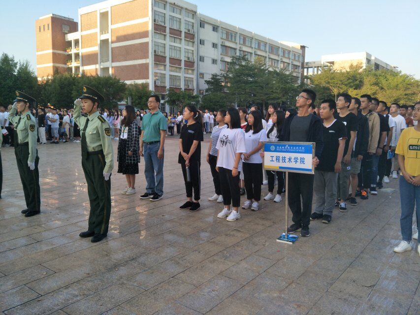 仪式伊始,校员工会国旗班迈着标准整齐的步伐,口号响亮,刚劲挺拔地护送国旗进场,在庄严的国歌声中,全体师生心怀着对祖国的崇敬热爱和对党的忠诚追求向五星红旗行注目礼,国旗在人们的注目礼中缓缓升起高高飘扬海经贸广场的上空。