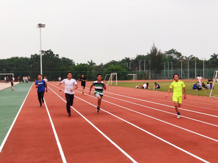 “各就各位,预备…跑”健儿们争先恐后地向前冲,只见某位同学一个趔趄摔倒在地,没有灰心丧气,重新爬起,奋起直追。在旁的同学因他的运动精神打动,而为他加油打气。运动员们用坚定的眼神冲过终点,露出无邪的笑容!