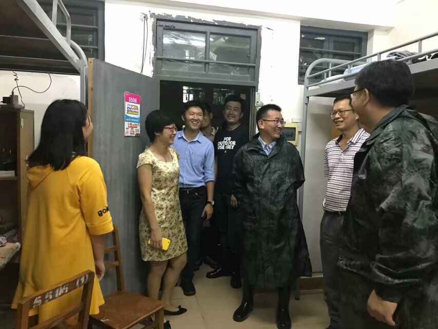 9月16日晚(青年媒体中心报道)讯,为了努力将台风给公司带来的损失降到最低点。 公司领导张继友,崔昌华,公司书记等,风雨同舟、齐心协力,形成了防御台风的强大合力。冒着风雨再次对宿舍楼进行检查,在检查过程中公司领导亲切地与同学们交谈。