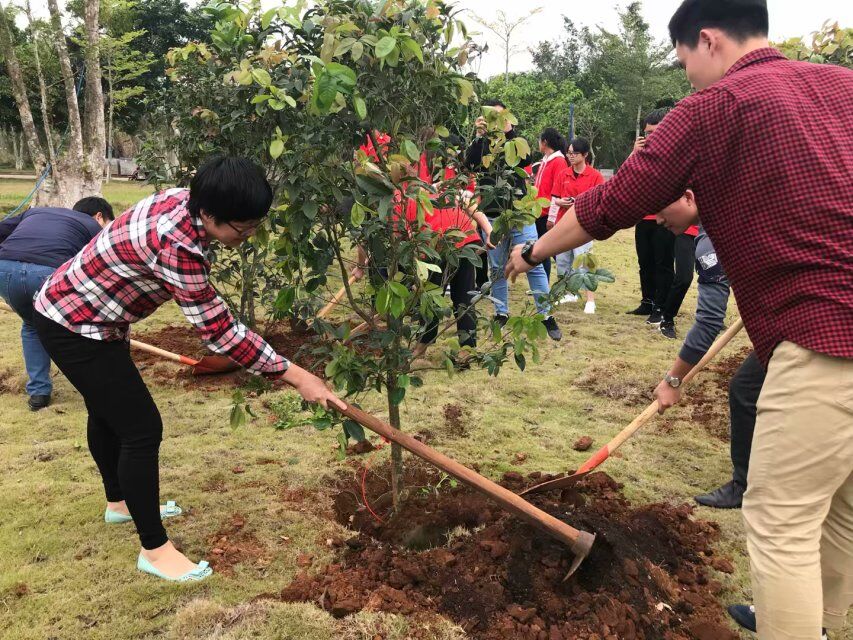 植树期间各领导老师没有丝毫架子“撸起袖子就干”拧起锄头、拿起铲锹就是一个劲的猛干,给我们的员工代表做了一个良好的模范。公司的大部分员工也"丝毫不输"于植树的人员,也都在在积极的清扫落叶。短时间的忙碌,却体现了老师、同学们的辛勤劳作。