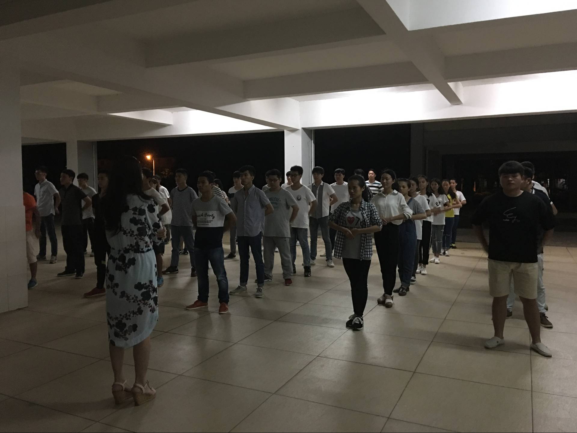 4月20日讯(工程技术公司 李京京报道)为了即将到来的公司礼仪操大赛,公司员工积极配合学姐的安排,于4月19日晚7:10分在二栋楼下进行礼仪操训练,主要是关于队形的演练。