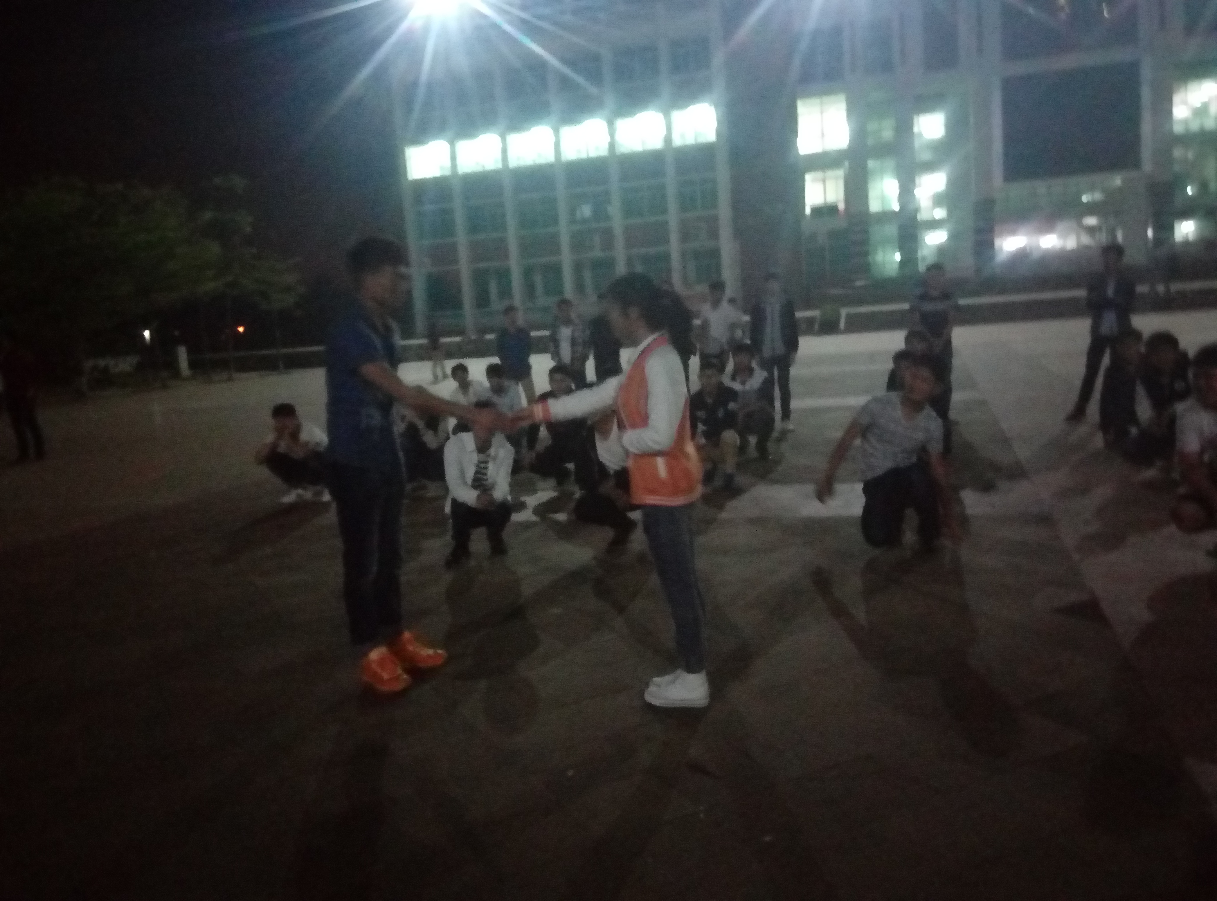 7:30分各班在班长的带领下到了指定位置训练礼仪操,有的班级在练手势礼、有的班级在练握手礼、有的班级学的比较快已经全部练完,现在对动作的规范性做强化训练。8点整,主席团各成员到达二栋楼下,开始一个班级一个班级的走访检查。首先让在训练的班级对这两周所学的礼仪操内容从头展示了一遍,主席团成员对班级所呈现的问题进行现场指导,并做示范为员工们演示。对于没练完的班级鼓励加劲,希望他们能尽快的学完礼仪操,然在进行细节的调制加强训练,不懂得动作要尽快提出来,学姐学长为他们答疑解惑。
