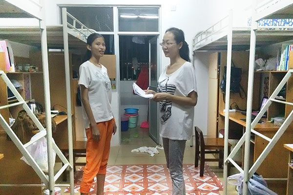 代老师先后对10栋(男生宿舍)、7栋(男生宿舍)、11栋(女生宿舍)进行了检查慰问,通过和同学们的亲切交流,了解到大家的暑期生活状况,并要求同学们尽快调整自己的心态,融入到新学期的学习环境和生活环境中。同时,代老师也在宿舍安全、宿舍卫生、宿舍文化等方面进行了检查指导,嘱咐同学们要注意宿舍的财务安全和用电安全,提高安全防患意识。代老师对宿舍总体情况较为满意,同时也为需要调改的宿舍进行了指导说明,代老师希望大家能维持整洁的室内环境、丰富宿舍文化,希望学子们继续保持健康向上的精神面貌。