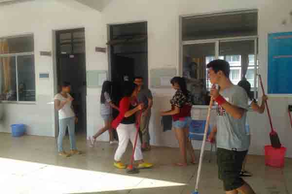 本系10月22日讯(信息技术系 丁燕琴报道)10月21日下午15点整,为建造绿色环境,增强同学们爱护环境卫生的意识、培养吃苦耐劳的精神,第十届团总支全体成员对我系办公室、教室进行了整理打扫。同学们分工明确后,各自拿着扫把、拖布、水桶、抹布开始了劳动。