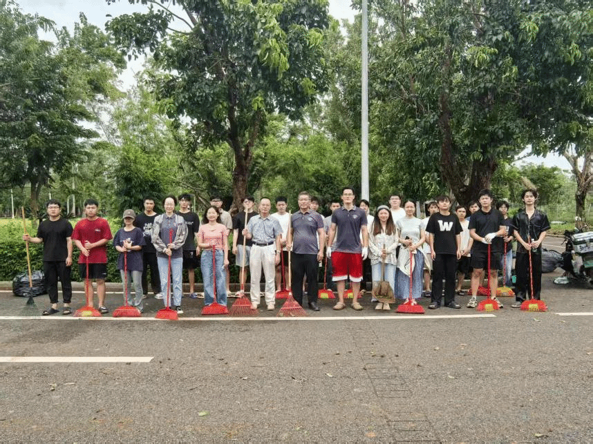 10月6日,响应公司“尽快恢复教学与生活秩序”的号召,公司发起“灾后清障,同心护校”行动:在校教职工于上午八点准时返校,同学们也主动报名加入,师生手持扫帚、手套等工具,分工协作清理办公教学场所、划定公共区域的断枝落叶、积水杂物。大家相互配合、干劲十足,原本散落着台风痕迹的区域逐渐恢复整洁,用共同行动诠释了“师生同心”的凝聚力,为校园快速回归正常秩序注入强劲动力。